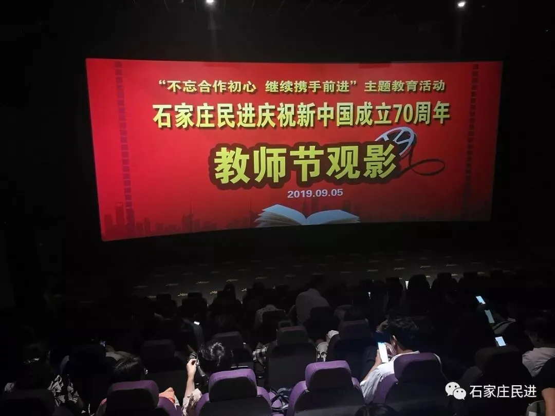 此次观影活动是民进石家庄市委会开展“不忘合作初心,继续携手前进”主题教育活动的一部分。民进有着深厚的教育情结,石家庄民进以教育界会员为主,组织大家集体观影,既是对教育界会员表达崇高的敬意和节日的问候,也是对广大会员革命理想信念的再教育。