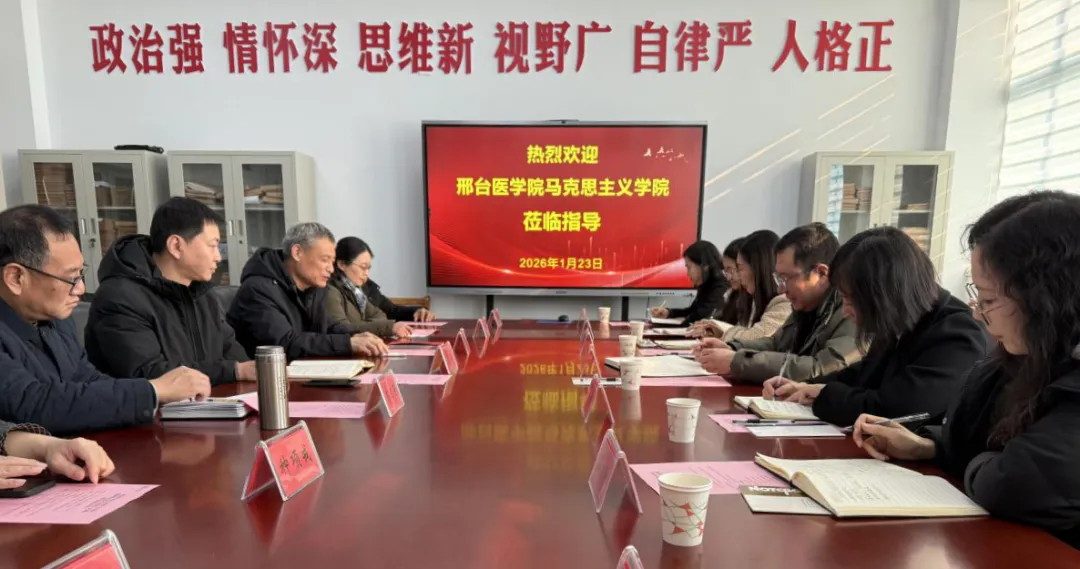 2026年1月23日,邢台医学院马克思主义学院副院长焦岩一行到我院进行交流座谈。邢台学院马克思主义学院党委书记王力、院长张兆平、副院长陈聚芳及各教研室主任参加座谈。