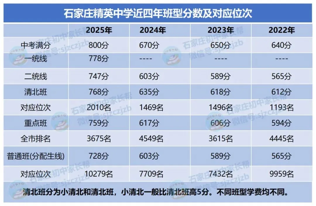 精英中学高中部基本班型为小清北班、清北班、重点班,普通班。