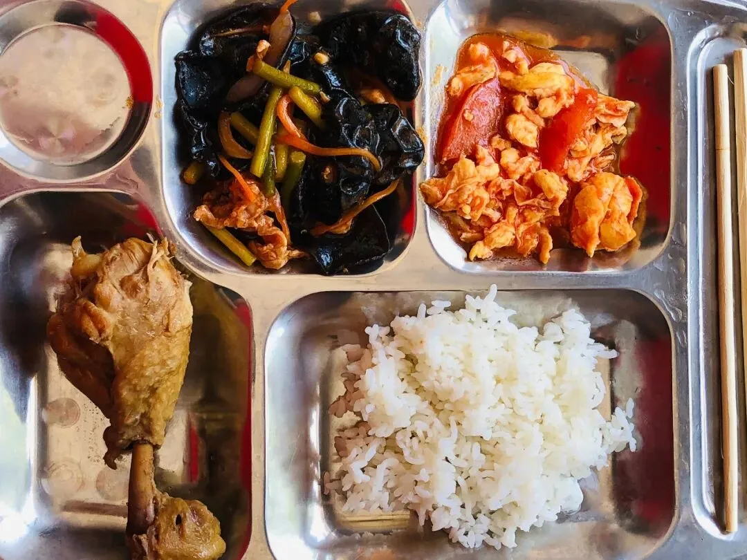 12:00 中心餐厅享用营养午餐(1荤1素+鸡腿+米饭+汤)