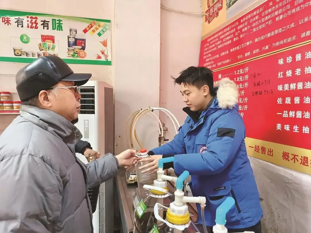 那天午后,一位母亲带着年幼的孩子走进店里,孩子好奇地盯着酱油从大罐流向瓶子内,眼里满是疑惑:“妈妈,这是在做什么呀?”母亲笑着解释这是“打酱油”,孩子却摇摇头,说只见过超市里瓶装的酱油。这个画面像一颗小石子,在陈好天心里漾起了涟漪。他忽然意识到,超市里标准化的瓶装袋装酱油、醋早已取代了传统的散装,“打酱油”“打醋”这些刻在老一辈记忆里的日常,正在慢慢淡出年轻人的生活。