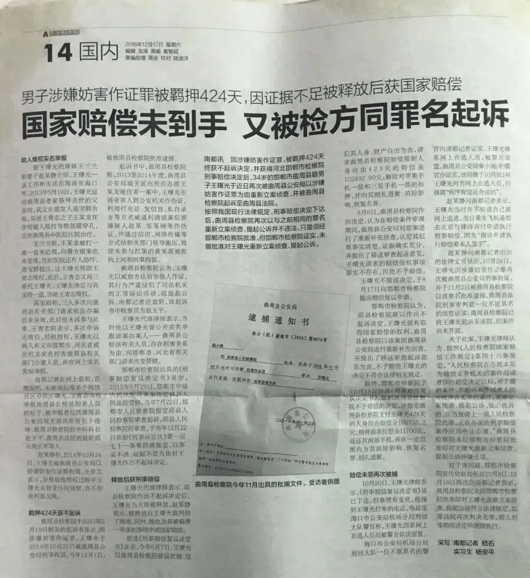▲南方都市报报道截图 2016.12.17