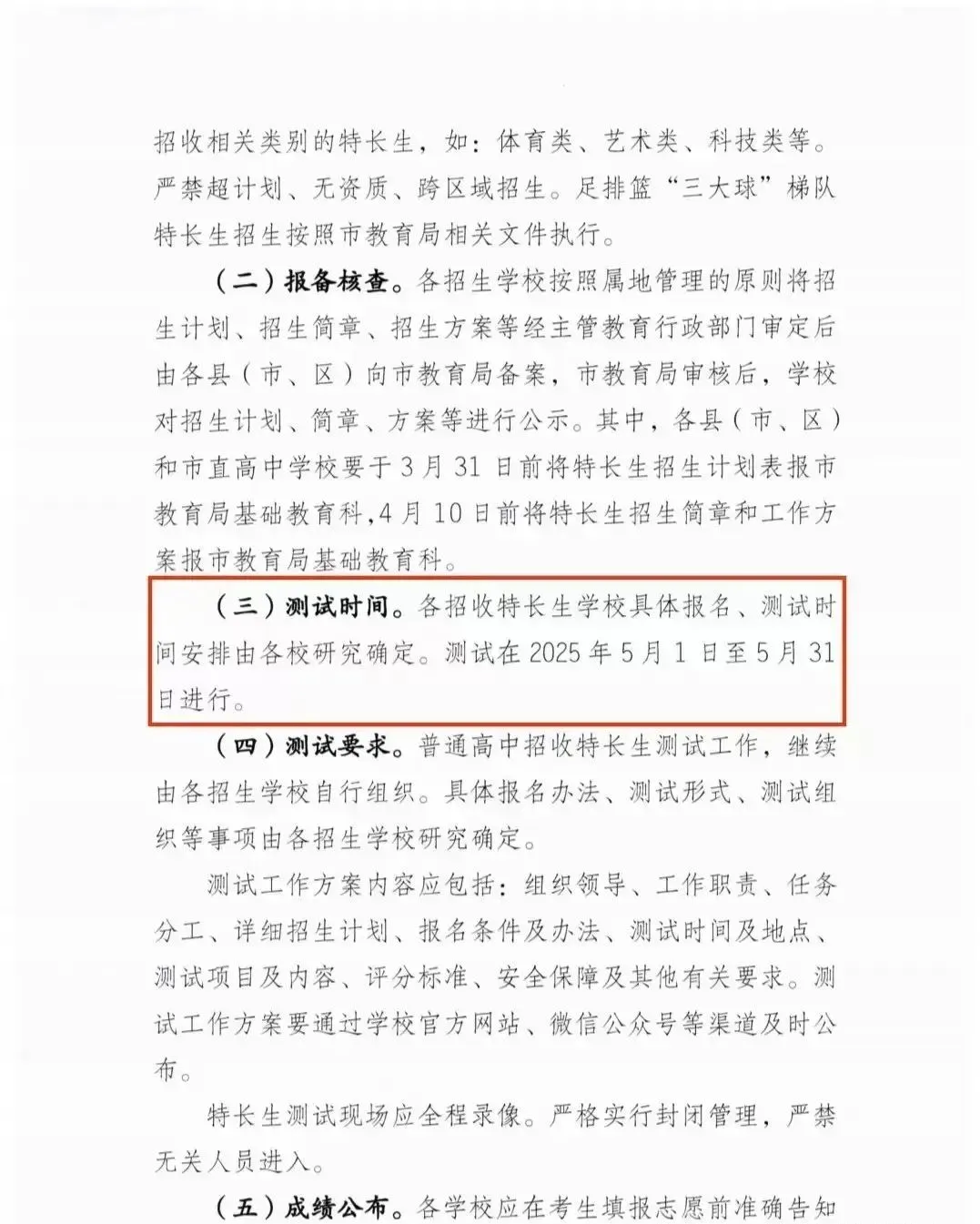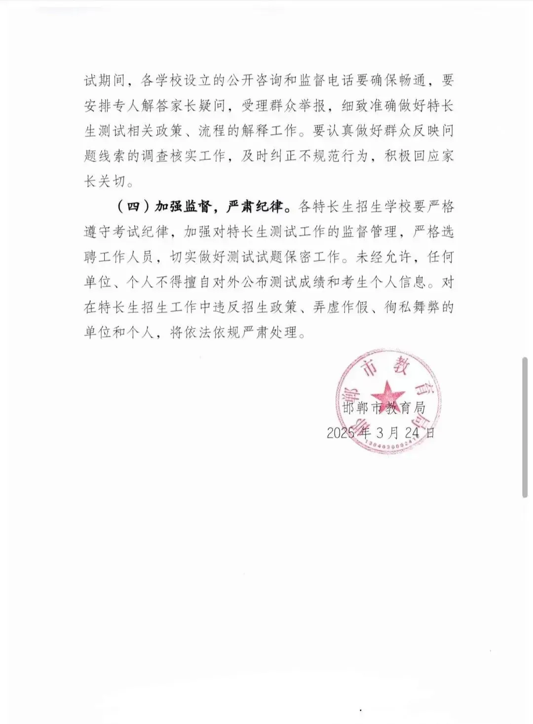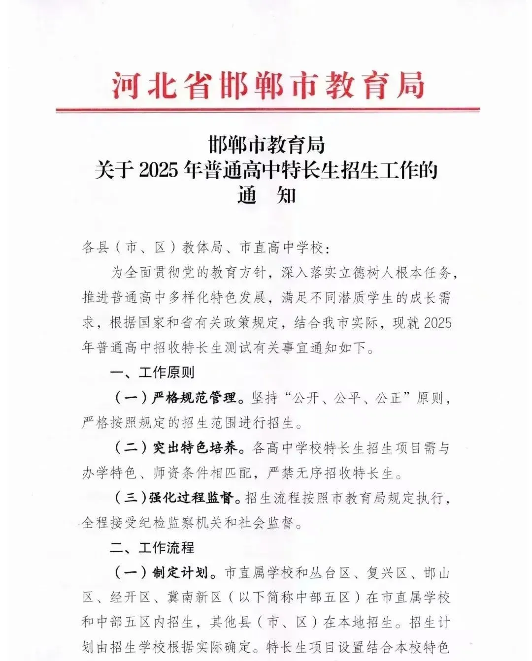 >邯郸市教育局关于2025年普通高中特长生招生工作的通知