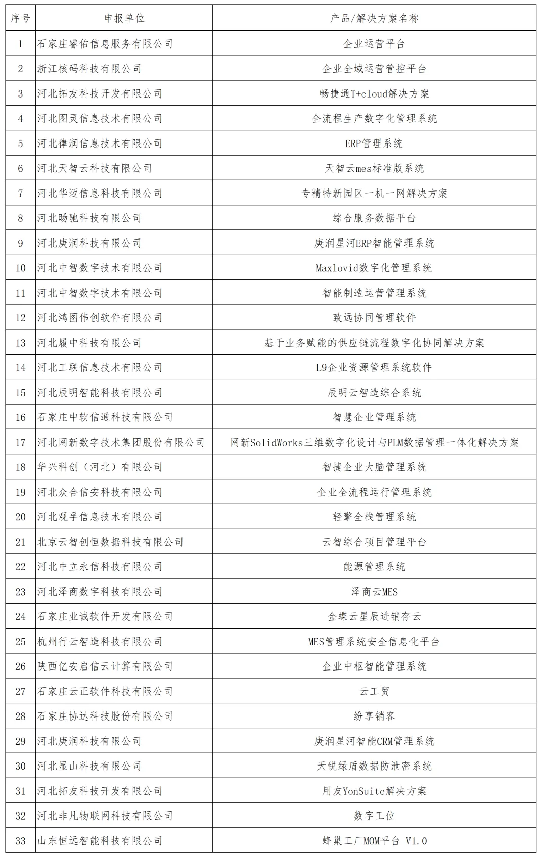 根据《关于申报优秀中小企业数字化转型“小快轻准”解决方案和产品的通知》有关要求,现将拟入选2025年石家庄市优秀中小企业数字化转型“小快轻准”解决方案和产品予以公示,请社会各界监督。