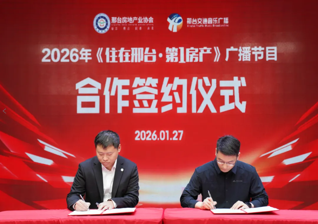 在《住在邢台·第1房产》广播栏目2026年度战略合作签约仪式环节,邢台新闻传媒中心交通音乐广播监制梁飞与邢台房地产业协会副秘书长姚文智共同签署合作协议,标志着媒企合作迈入新阶段。该栏目由市住建局指导,新闻传媒中心与市房协联合主办,6年来累计播出1800余期节目,举办线下活动50余场,已成为政企沟通、服务民生的重要纽带。