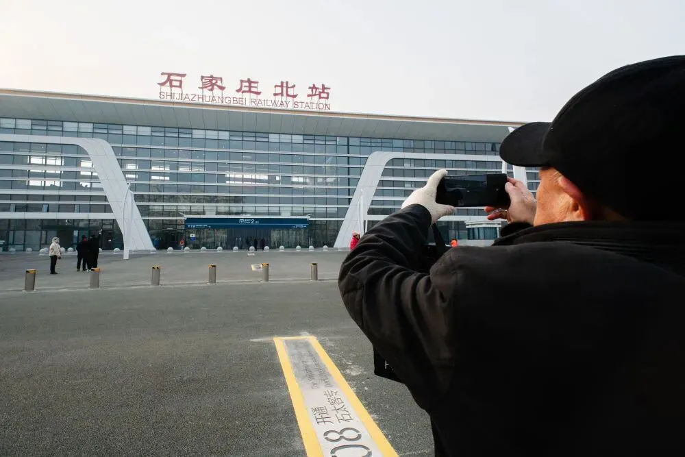 ↑1月26日,市民在石家庄北站外拍照留念。(受访单位供图)石家庄北站老站房于2024年10月停办客运业务开始升级改造。一年多来,各参建单位在工期紧、任务重、施工场地狭窄的复杂局面下,顺利完成了南北站房、站台、雨棚、天桥以及站内通信、信号、电力、接触网等设备设施的改造建设任务。