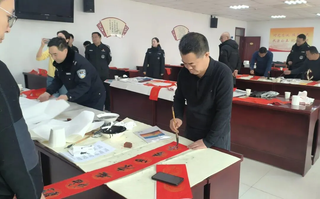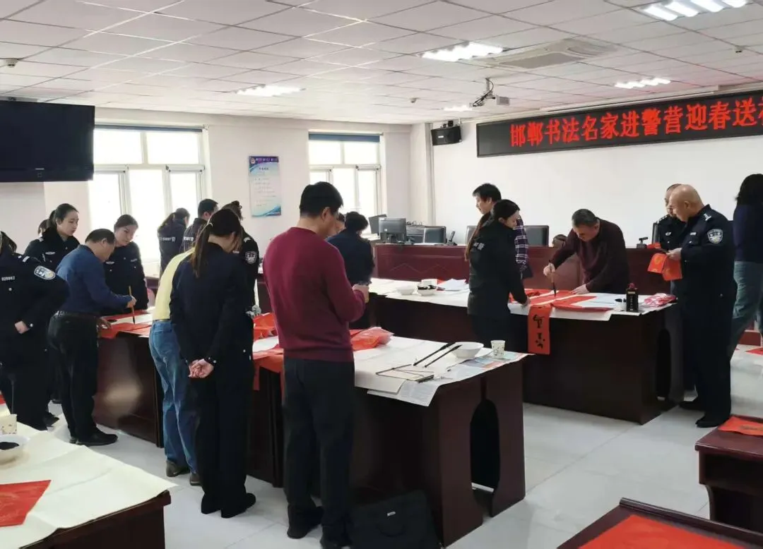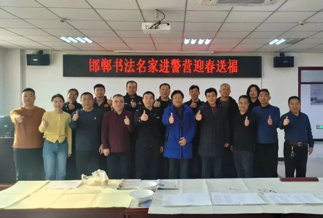 腊月初启,墨韵传情。1月27日,邯郸市书法家协会一行9人,在副主席关建洲的带领下,走进市公安局警训支队,开展“写春联送万福进万家”公益活动,为公安干警送上新春的美好祝福。