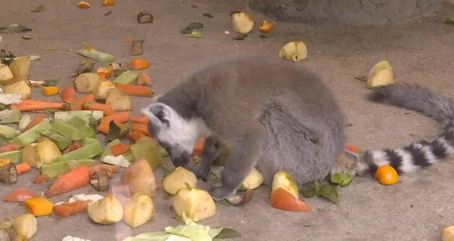 走进两栖爬行动物馆,室内温暖的气息扑面而来。鳄鱼正悠闲地趴在暖气片旁,显得十分惬意。在馆内其他展区还增设了多盏日光灯。工作人员介绍,这些灯光不仅能为动物加温,还能模拟出自然光照,给动物们营造出更适宜的生活环境。狐猴馆则开启了暖气片+地暖双重保暖,狐猴们在温暖的场馆内嬉戏打闹,时而低头梳理长毛、时而结伴小憩、时而快乐的进食,尽显惬意姿态。