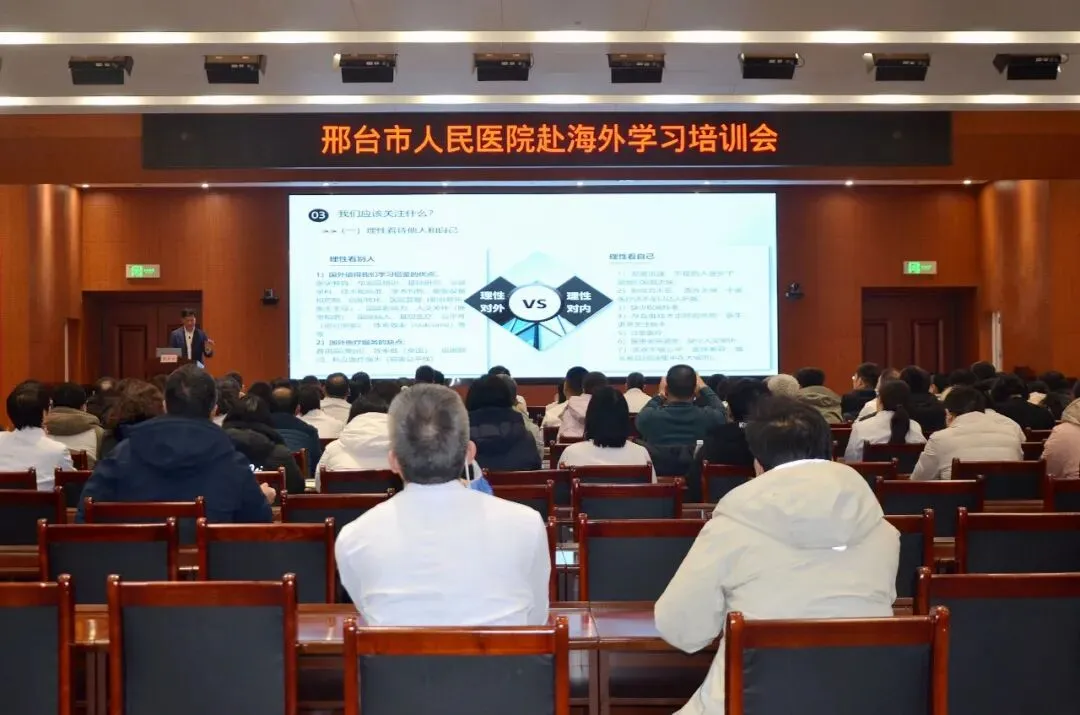 讲座中,专家以浙江省“千医出海”计划为例,系统分享了该省近年来选派千余名医学人才赴境外研修的成熟经验。分享不仅涵盖人才选拔、系统培训、管理考核的全流程闭环机制,还通过生动案例,介绍了研修人员如何将国际前沿技术、管理模式等“带回来”,并最终转化为提升区域医疗水平的切实成果。这一经验为邢台市人民医院推进人才国际化建设提供了可借鉴、可操作的实践范本。