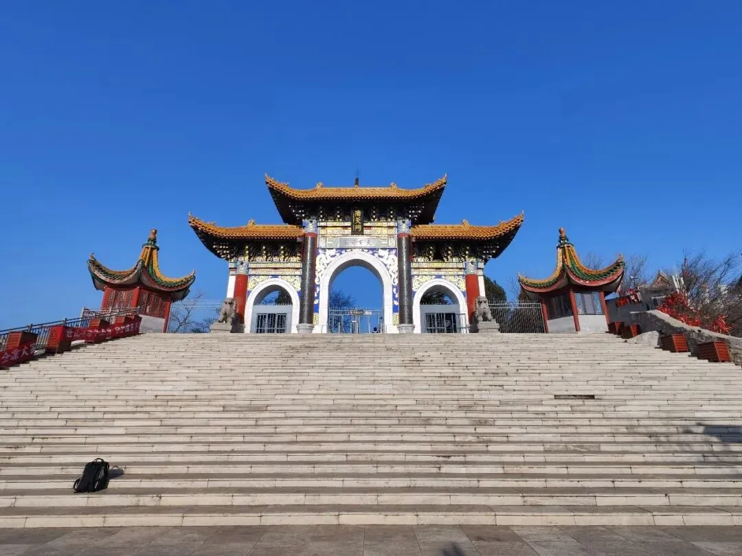 抱犊寨道乐,古称《玄门雅韵》《皇坛玄韵》,用于金阙宫日常功课、斋醮祈福、祭祀北岳等科仪,兼具道教神圣性与地方艺术特色,与北岳之佐命的宗教地位呼应,数百年来一脉相承 。分声乐(直诵、音诵,如祝圣文、天尊号)与器乐(丝竹、吹打)两类,适配不同科仪场景。吸收河北丝弦、梆子、晋剧等地方戏曲元素,唱诵带鹿泉方言韵味,兼具庄重与灵动。代表曲目有《祝圣文》(肃穆)、《四报恩》(激昂)、《扯不断》(婉转)、《开天符》(高亢)、《下水船》(幽静)等。现在是是石家庄市级非遗项目。在月老殿前,找到这棵“碧桃有灵”古桃树。相传它是张三丰亲手栽植。据说这棵桃树“乱世则枯,盛世则荣”。如八国联军进北京时,它曾一度枯蔫,民国初年抽芽复萌却不开花,而1991年重建金阙宫时,它枯木逢春,越长越茂盛,还结出了累累硕果。有诗赞曰:“浩劫根基枯,盛世新枝茂。绿叶灿朝晖,红花映晚照”。金阙宫为道教三丰派子孙庙,张三丰为道教隐仙派六祖,元末明初云游抱犊寨,题“抱犊福地”于崖壁,传下三丰派道法与武学,被尊为金阙宫三丰派宗祖 。明崇祯年间三丰派十六代郭资明(白云大师)栖居蛟龙洞,传下养生武术与科仪音律传统。清顺治十七年(1660)由三丰派十七代王月真在旧庙基础上创建和传承。至今已传30代,金阙宫住持邓清泉为三丰派玄裔弟子,系统传承玄岳三丰太极门功夫。“玄岳三丰太极门”功夫,融合太极、八卦等元素,兼具养生与技击价值,为石家庄市级非遗项目。金朝末年,这里还出了一代名将武仙,在抱犊山道观中出家,后下山组织乡兵抗击蒙古军队。这个武仙,金末威州(今河北井陉旧威州)人,“河北九公”之一,被封为“恒山公”,官至枢密副使、河南行省长官 。《金史·武仙传》载其“或曰尝为道士,时人以此呼之”,曾屯兵镇守抱犊寨,金亡后率残部溃逃,最终于1234年在泽州被戍兵杀害 。抱犊山遂成为抗敌兵寨,得名抱犊寨并沿用至今。河北九公,是金宣宗兴定四年(1220年)二月,为抵御蒙古,册封的九名河北、山东、河东地方武装首领,合称“河北九公”,史称“九公封建” 。这山上,从古至今,不仅金戈铁马,还是旖旎避暑地,既是佛的天界也是道的洞天。长揖作别,真乃:金阙凌霄,仙风常拂千年寨;丹炉映日,道韵长留万古风。下山,路过天堂街。天堂街是在山寨上修建的文化旅游街,采用秦汉时期的建筑风格。天堂街两侧商店,以餐饮为主,这个时间是中午时分,但几乎没有食客。我肚子饿得咕咕叫,但是没有人吃饭的一个个饭馆,让我望而不敢去。终于忍不住,在街口买一根烤火腿肠。“喵喵喵”,一只三花飞过来,它嘴的一圈是花的,看来是个“好吃嘴”。我问卖烤肠的小哥,它吃生的还是熟的。小哥说它吃熟的,就吃你嘴里那个。我着急把火腿肠掰给它,它也着急得围着我转。很快吃完一根火腿肠,第二根它明显吃得慢了,是吃饱了,但它守着肠不动。我在想是不是还有其他猫,呼喊它们也来吃。小哥说这里是它的地盘,它把别的猫都打跑了,你看它多胖。夏天的时候,它还有老婆,两只猫在这里卿卿我我,现在老婆带着它们孩子走了,它一个猫占在这个有利位置的地盘上,独霸食物。我环顾四周和远处,它的老婆和孩子呢。在这个寒冷的冬天,它独果自腹,她们吃啥呢。前面是韩信文化园,一处园林式景点,建有关于韩信故事的数组雕塑,还有“韩信点将台”、和仿古的“瞭望台”及战车模型等。金末元初诗人元好问,晚年隐居鹿泉创作《鹿泉新居二十四韵》。诗句是这样的:“土门西边井陉渡,野日荒荒下汀树。榆关石岭都几程,客梦往往迷归路。尘埃风雨半生过,尽著筋骸支世故。宁州假馆又两年,未保东来不西去。……就中抱犊尤峭拔,望见韩山即攀附。韩王砦头四望阔,全赵米如才数聚。眼中麾盖天上来,泜水鼓旗纷偃仆。汉家威灵万万古,石子连冈犹虎距。”诗人描述了“尘埃风雨半生过”的漂泊经历,登上抱犊寨,在战国遗迹的苍茫中,寄寓了隐逸山林的生存选择和对故土变迁的深沉感怀。卧佛是抱犊山的主峰,整个主峰是巨佛硕大的头颅,头南足北,眉目清晰逼真,落日余晖中,卧佛的周身像镶上一层金边。我无缘见到整个山寨的图景,借网络的图片与大家一起欣赏。在车厢里,看见人们走在蜿蜒崎岖的登山步道上。我想中午登山的人多于早上,因为今天是元月二号。抱犊寨开发了夜游登山项目,夜登免门票,石家庄的年轻人夜爬比较多,山不太高正好是健身的好地方,山上有牛郎织女的家,可以1314许个美好的愿。二十年前就引我探究的景点,过了二十年后才来,并且选在了光秃秃的季节来看山。不过写完这个游记,并了解到它的历史背景后,长叹一声,原来它是那么丰富而多元。文旅部门还是要多宣传宣传。