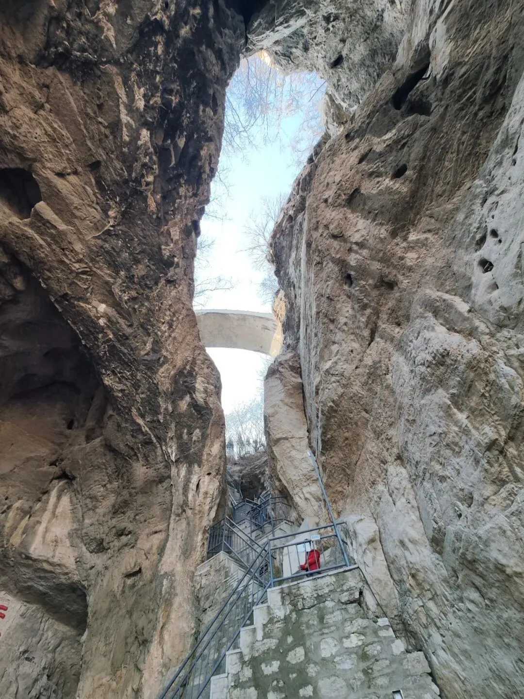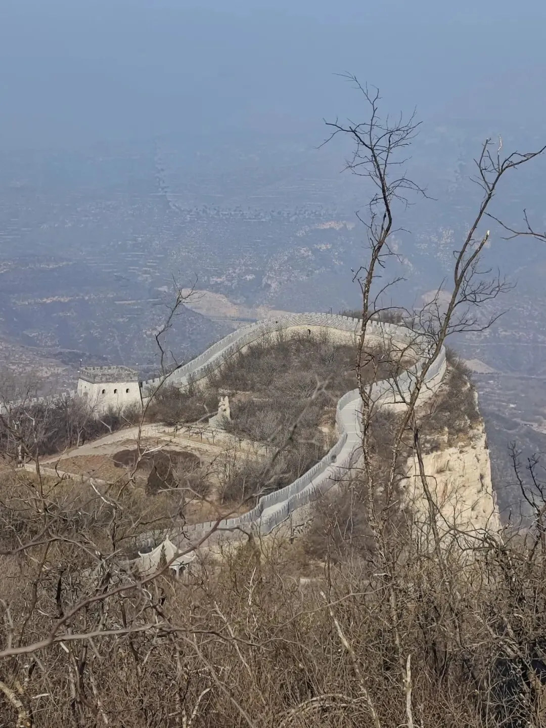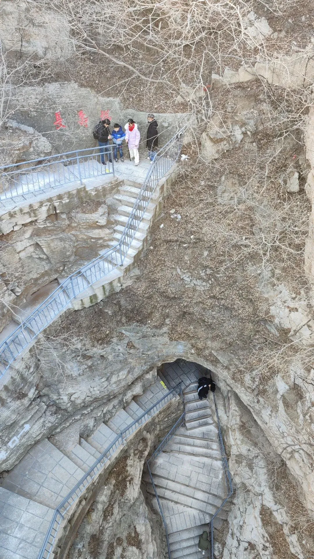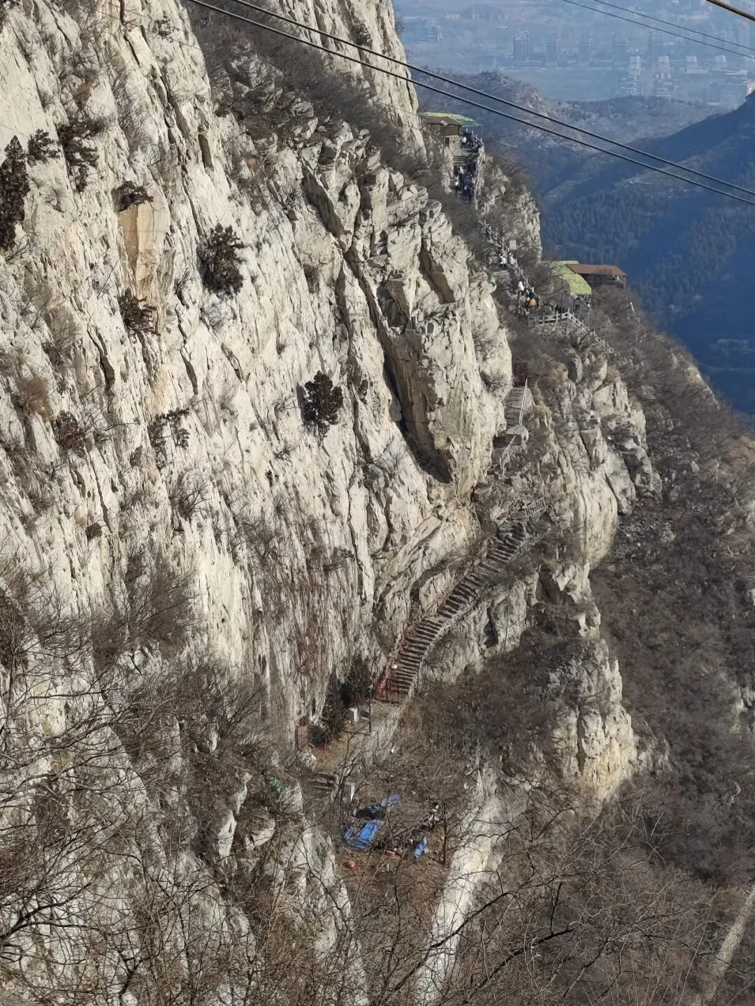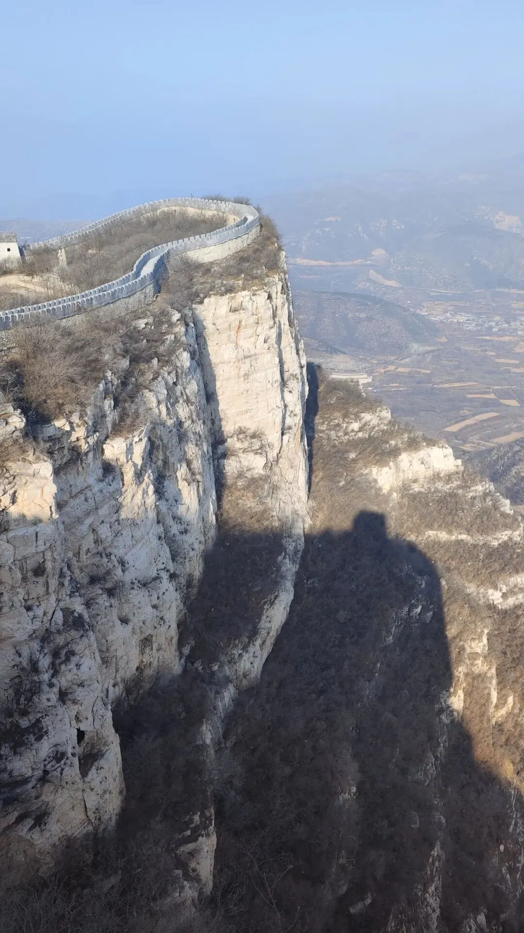 河北石家庄抱犊寨,这个风景区早些年出现在“京津冀旅游通票”里,是我曾经计划去的地方,但后来从名录里消失了。网上对它的评价褒贬不一,有的说好,有的说不好。对这个地方有些好奇。好奇是因为它的名字,顾名思义,抱着牛犊子的山寨,可以这么理解。从石家庄城中心到抱犊寨的车程也就半个小时,抱犊寨位于石家庄市区西部鹿泉区莲花山上。海拔四五百米,坐缆车上去。这个季节的清晨,缆车上就两位乘客,还有一位乘务员。缆车是一个箱体,途经一个中间站,车厢基本是擦壁“吱”过,正因为如此,车厢需有乘务员。景区介绍是全国唯一一座设有中间站的客运索道。我想它不是唯一,主要原因还是安全因素。从缆车下来以后,看四面山体是这样的,远处城市村庄尽收眼底。《史记.淮阴侯列传》载:“韩信伐赵,使轻骑二千人,人持一赤帜,从间道萆山而望,即此。”抱犊寨的走向为北东至南西,并向北东方向倾起的向斜,山体四周悬崖、峭壁陡立,而山顶平坦开阔,向南可将井陉古道和土门关收入眼底,是较好的观测敌军军情之地。因此,韩信在这里布兵,成就了历史上著名的战争——井陉之战。井陉之战是历史上出奇制胜以少胜多的典型战例。韩信奇正并用,背水列阵,拔帜易帜,灵活用兵,出奇制胜,速战速决,背水一战,产生了这么多成语。攀爬几步,即看到南天门,高13.9米,宽23米,号之“中国最大的山顶门坊式建筑”,可能算不上,但它也足够巍峨,既有牌坊的造型,又突出了门的特点,两旁配有飞檐翘角的六角亭和雄踞的石狮。“南天门”三字,为当代著名书法家陶然先生题。“天下奇寨”四字是溥仪侄子书法家爱新觉罗·毓嶦先生题。抱犊寨,古时称为“萆山”,萆(bi)字是一个草字头加自卑的卑,有隐藏的意思。唐《元和郡县图志》记载:“萆(bi)山,今名抱犊山。韩信伐赵,使轻骑二千人,人持一赤帜,从间道萆山而望,后遂改为萆山。后魏葛荣之乱,百姓因山抱犊而死,故以为名。”清代《获鹿县志》也称:“抱犊山,旧名萆山,在县西八里。”北魏葛荣起义时,当地人为了躲避战乱,上山耕种避祸,但是因山陡,大牛根本上不来,只能抱着小牛犊上山,养大之后再进行耕种。因此从那时起,萆山就被称为抱犊山。转过弯,来到韩信祠。祠前平台立一方亭,为点将台。祠内未有陈设,三面壁画展现了韩信大破赵军、射鹿得泉的场景。祠前门联曰:“人穷志不穷,荣为韩信,辱为韩信;勇显谋非显,成也萧何,败也萧何”。从韩信祠向左,走向了长城。抱犊寨长城,不属于明长城,是山寨的长城,蜿蜒于悬崖峭壁边缘,依周回的山势建成,连绵起伏,将整个寨顶团团围住。韩信,秦末淮阴人,出身平民,早年家庭贫困,曾寄人篱下,受胯下之辱。秦末农民起义爆发后,韩信先投靠项梁,项梁败后归属于项羽。刘邦率军进入蜀地后,韩信脱离楚军归顺了汉,因不被重用,决定离开,于是萧何月下追韩信,将其推荐给刘邦。刘邦登坛拜韩信为大将,与项羽争夺天下。汉元年(前206),韩信献“汉中对”,平定三秦。楚汉之争,韩信以其杰出的军事才能横扫魏、赵、代、燕、齐诸国,并数次以兵支援刘邦:蒲坂之战,他以声东击西之计拿下魏都安邑;井陉之战,背水一战,大破赵军;潍水之战,水淹齐楚联军,斩杀楚将龙且;垓下之战,布五军阵诱敌,击破项羽军,最终迫使项羽自刎于乌江。战后,韩信因功徙封楚王。汉六年(前201),刘邦开始剪除异姓王,韩信被贬为淮阴侯。汉十一年(前196),因被人告发参与陈豨谋反,韩信被吕后与萧何合谋杀死于长乐宫,并被诛三族。韩信擅长治军,善于指挥大兵团作战,是秦汉之际第一流的军事家,明人茅坤赞其为“兵仙”。他留下了兵学著作《韩信》三篇,是《汉书·艺文志》记载的“兵权谋十三家”之一,与孙武、孙膑、商鞅、吴起等兵家并列。公元前204年,汉军击灭了魏王豹后,此时,黄河北方尚有代、赵、燕三个割据势力。十月,韩信统率汉军,越过太行山,开始伐赵。赵王歇、赵军主帅陈馀闻讯后集结大军于井陉口防守。井陉口是太行山有名的八大隘口之一,即河北获鹿西10里的土木关。在它以西,有一条长约几十公里的狭窄驿道,易守难攻,不利于大部队的行动。韩信率军在距井陉口30里的地方扎下营寨。半夜,挑选两千轻骑,让他们每人手持一面汉军的红色战旗,由偏僻小路迂回到赵军大营侧翼的抱犊寨山(井陉县北)潜伏下来;另又派出1万人为前锋,乘着夜深人静、赵军未察之际,越过井陉口,到绵蔓水东岸背靠河水布列阵势,以迷惑调动赵军。次日,战争开始,汉军一面与赵军佯装背水一战,另一面埋伏在赵军营垒翼侧抱犊寨山的汉军二千轻骑,乘着赵军大营空虚无备,突袭赵营,插上汉军战旗,切断了赵军的归路,其后韩信则指挥汉军主力全线反击。赵军仓皇向泜水(今河北获鹿南2.5公里处)方向败退,被全歼。此役,赵军主帅成安侯陈馀被斩,赵王歇束手就擒。唐代王涯有诗曰:戈甲从军久,风云识阵难。今朝拜韩信,计日斩成安。抱犊寨地质构造堆积了较厚的第四纪沉积物,两翼有奥陶系灰岩出露,是一座顶平崖陡奥陶系灰岩构成的断块山。远处的平台,应该就是埋兵窥望赵军的地方,确实是地处险恶。在这山顶四周建以长城,敌人很难攻上来。乱世中人们躲在这里避乱,是一处能够安生的福地。通往万佛洞要下台阶,气喘吁吁,下台阶也这么累,因为它太陡了。冬天萧瑟,树木干枯,寸绿没有。累得,在这里歇歇脚,