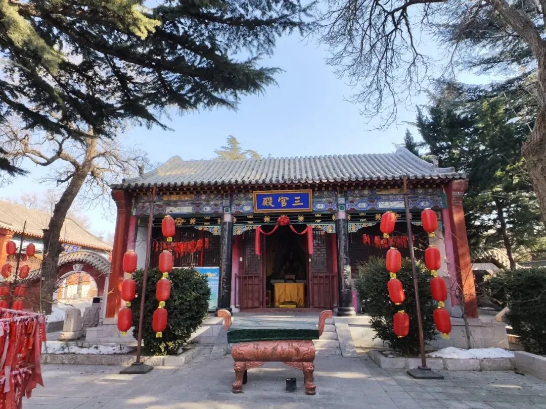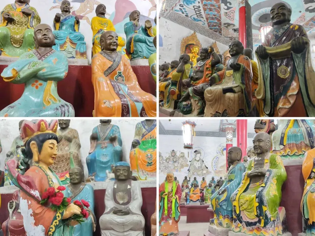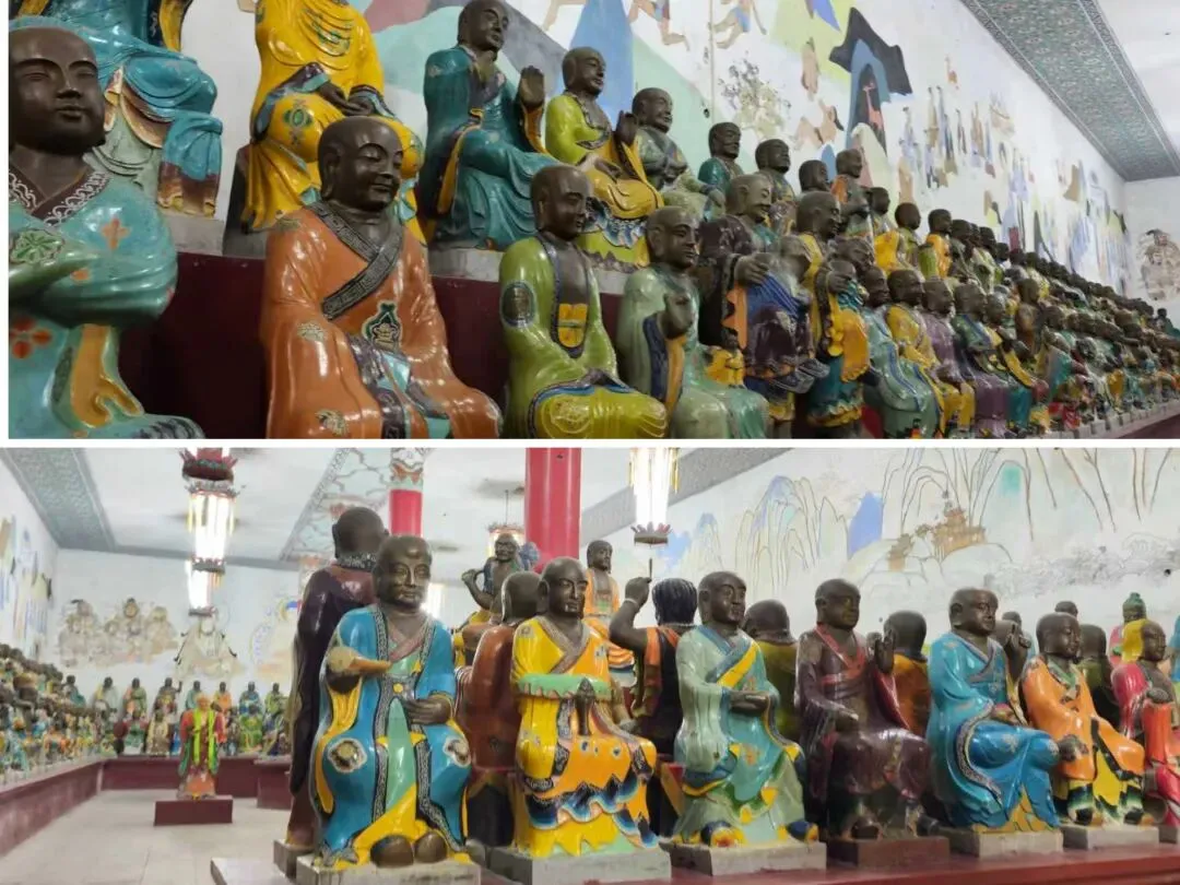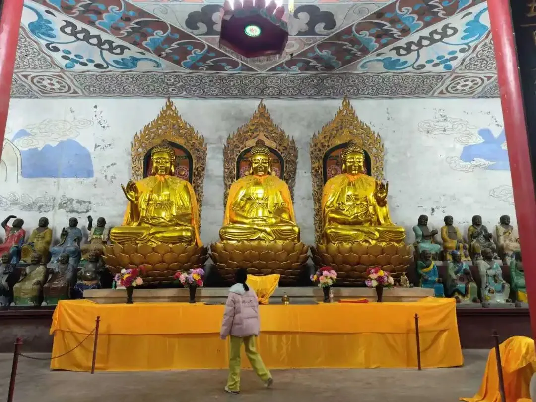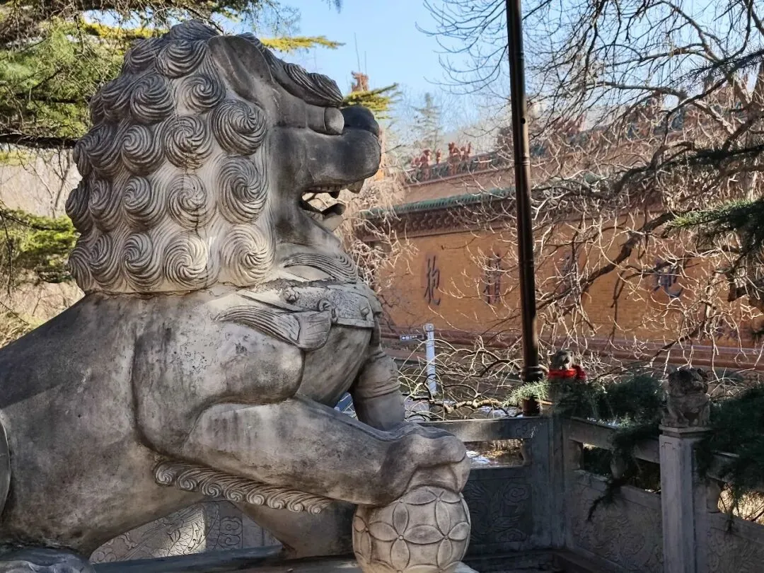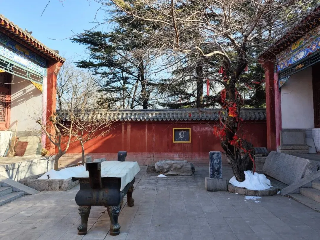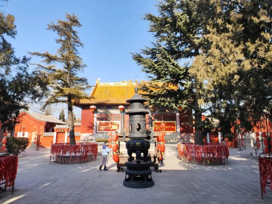 北宋时期,石家庄地区有两座比较大的城,分别是真定府、庆源府的治所,位于今正定县和赵县。抱犊寨属于真定府,差不多是距离辽国最近的地方。公元1004年,宋辽订立“澶渊之盟”,约定双方以白沟(今拒马河、海河一线)为界,正式形成了双方和平相持一百年的新局面。这些题刻大致在那个和平时期,多为河北西路官员(提点刑狱、县令、军府事等)公务之余登山避暑,祈雨赈灾,勒石留名。靖康二年(公元1127年),北宋灭亡,石家庄一带陷入金朝统治。抱犊寨后来也成了抗元的据点。仰望宋刻,想象他们来到这块平台,鲜衣轿辇,前拥互协,敬香礼佛的生动场景。一千年了,人,无论是歌咏还是战争,都不过只在山石上擦过的微小痕迹,浩瀚星宇,茫茫然。顶上的飞虹石桥,在光天化日之下,闪着明亮的光。我想,应该在春花烂漫的时候来,或者流水潺潺的夏日来,是不是更不一样。从万佛洞出来,位于寨顶北部,是景区打造的另一处景观——牛郎织女家。这是一个仿古四合院建筑。门前为天池,后依长城,青堂瓦舍,绿树环合。走进这个四合院,院内有水井,屋内有牛车,卧着一头铜牛。院东有牛郎的谷场、碾子、磨盘,院西为菜园。正房、厢房内有蜡像牛郎织女故事场景,其中正房中间为牛女成亲场面。我想七夕之日,到这里来应景的年轻人一定很多。天池水已经封冻了,池上有一座玉带小桥,池畔有石林造型及供小憩的长廊。这块光彩夺目的琉璃壁,高13米,长38米,有九百九十九条大小各异的琉璃龙浮跃于上,称之为抱犊寨一大奇观。壁的后面有“抱犊福地”四个大字。照壁前方是五百罗汉堂,是全国最大的山顶地下石雕群。罗汉堂由地上和地下两层构成,地上是“弥勒殿”,地下是“五百罗汉堂”。走入地下,要穿过汉白玉的甬道,中间镌刻有十三条浮雕腾龙。这条甬道很长,地宫的阴深感压过来。我想,为什么要把罗汉堂建在地下呢。罗汉的石材全部使用当地鹿泉青石,由曲阳雕刻大师精雕细琢而成。不得不说,河北曲阳的工艺全国一流。我转在罗汉们的身前身后,这些绚烂多彩的罗汉真可爱,刚才的阴冷之意被化解开了,继而被他们的形态所感染,也喜笑颜开。我还是再想,为什么要把罗汉堂建在地下呢,让他们在地上殿堂是不是更好。与罗汉们依依不舍的告别。一院红墙外列着苍柏仪仗队。这是山顶道观——金阕宫。三个字里有“阙宫”两字,我发现几乎所有人,至少跟我擦肩而过进门的人,都听见他们嘴里不由自主地念叨出“天上宫阙”,继而要延伸出“今夕是何年”。金阙宫创自金元时代,明清鼎盛,自古以来就是道家福地,北岳之佐命。“北岳之佐命”是道教神话中辅佐北岳恒山君(北岳大帝)的两座从祀名山。五岳各有佐命,北岳恒山的佐命山,古籍载为河逢山、抱犊山。佐命山如同北岳的“辅相”,协同主掌北方水系安宁、走兽昆虫等神职,强化“北岳”镇北护边“的神格体系。”噢,原来如此。走进这座外表看着就金碧辉煌,神秘而悠久的道观。山门内,手持法器的不是哼哈二将,是道教护法神“青龙孟章神君”和“白虎监兵神君”。阳光洒在金色的屋顶和院内,松柏苍翠,福带飘飘。寺观复建于上世纪九十年代,距今也有三十年了。宫内以玉皇殿为中心,两侧配祀三清殿和三官殿。三清殿供奉三清祖师玉清、上清和太清;天宫殿内供奉天官、地官和水官。道教神祇与佛教不同,但跟老百姓的祈福的生活是密切相关。金阙宫没有供奉抱犊山真君,主殿玉皇殿奉玉皇大帝。玉皇大帝,全称“昊天金阙至尊玉皇大帝”,与宫名“金阙”呼应。殿内玉皇大帝着帝王穿戴,他前面一尊为真武大帝。玉皇大帝总管三界、十方、四生、六道的一切阴阳祸福,在汉族民间信仰中是众神之最,是天界最高主宰之神,是天上第一。环顾四周,两壁有壁画,鼓、锣、磬一应必备。殿内繁复而非杂乱,像刚完成一场热烈的表演,而恰好道士不在。金阙宫有“镇宫三宝”:壁画、“碧桃有灵”古桃树和抱犊寨道乐。玉皇殿两壁的壁画,为1991年复建金阙宫时绘制,画面上玉皇大帝升座,两侧环列天兵天将、星宿神祇、南极仙翁、八仙等,彰显天庭威仪。