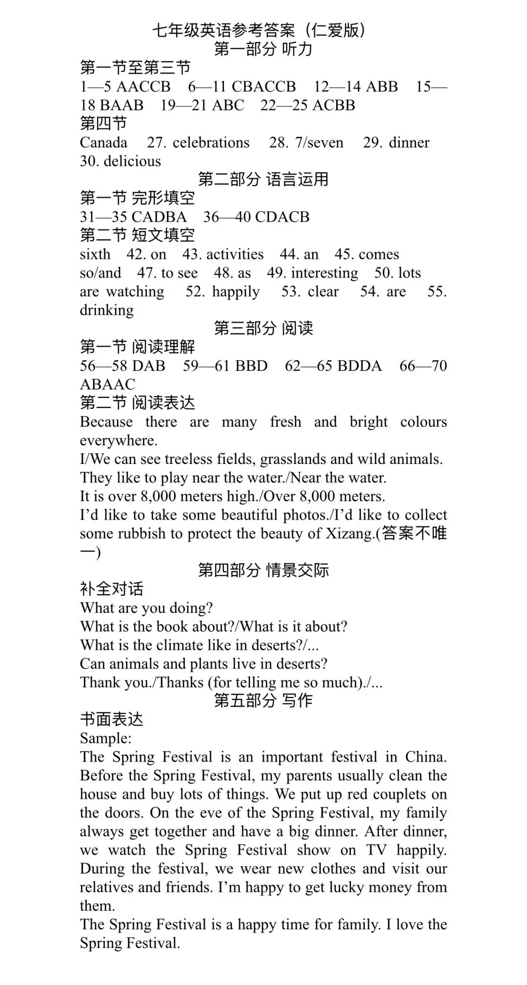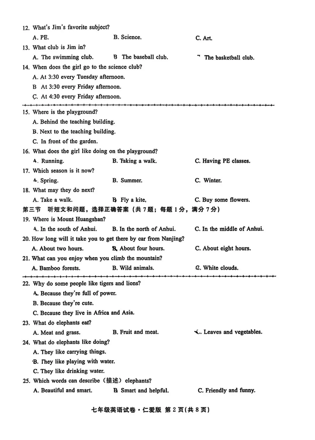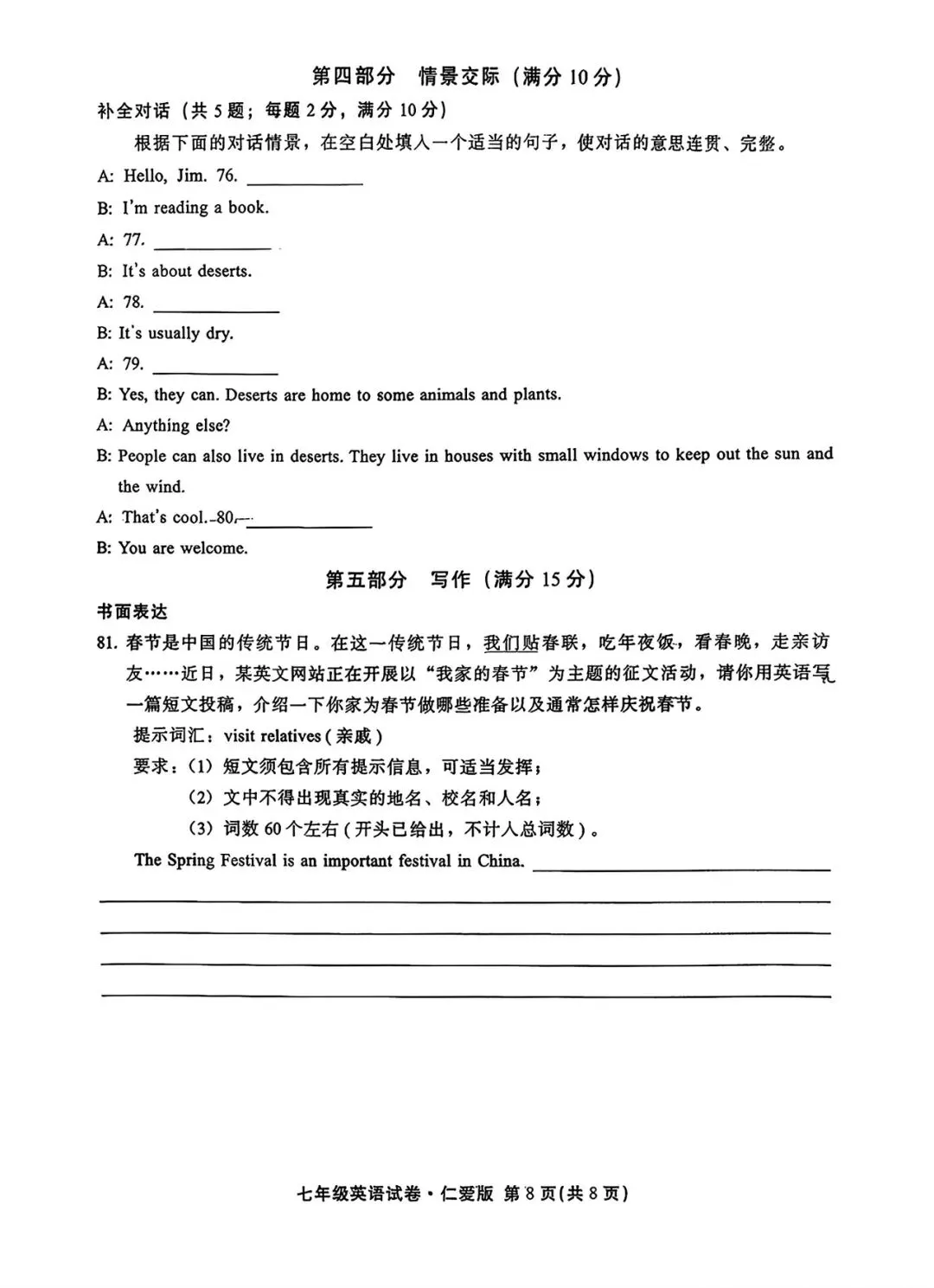 邢台市2025-2026学年第一学期七年级期末英语试卷