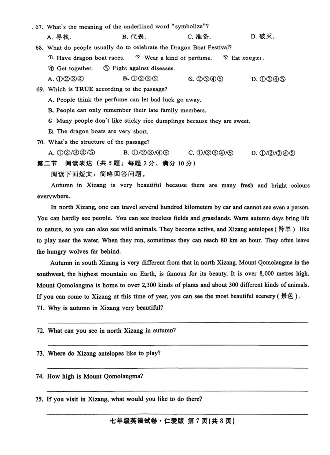 >邢台市2025-2026学年第一学期七年级期末英语试卷