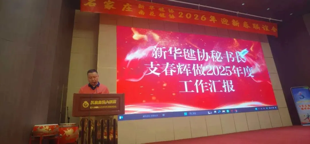 1月25日晚,凯旋鑫悦大酒店三楼金色大厅,2026年石家庄新华毽协&南花毽协迎新春联谊会(年会)隆重举行,新华毽协&南花毽协为参加联谊会的200多位毽友准备了精致的随手礼和丰富的抽奖礼品,张曙楠教练还为联谊会争取了多家企业赞助。联谊会在六位主持人铿锵有力的开场词中拉开序幕,新华毽协会长许杰从大洋彼岸为联谊会送上祝福视频,预祝联谊会圆满成功,祝毽友们在新的一年里心想事成,马到成功!新华毽协秘书长支春辉就新华毽协2025的工作做了总结发言。