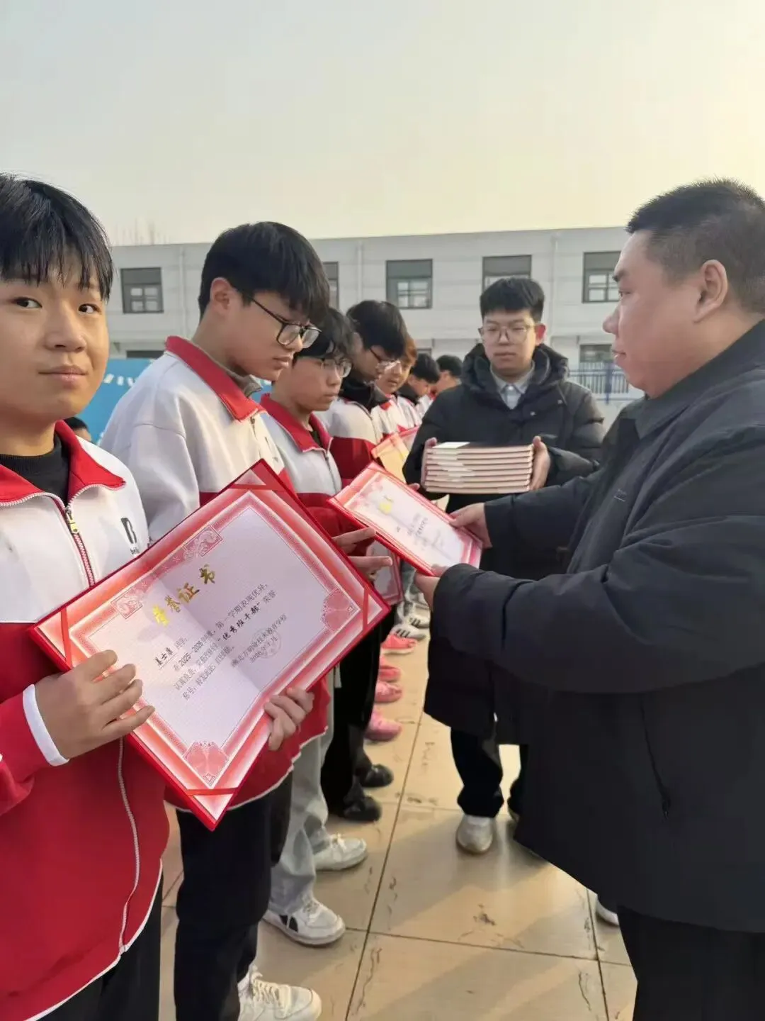 随后,教务处主任宣读表彰决定,对本年度在专业学习、技能实操、班级管理中表现突出的学子予以表彰,授予“汽修技能标兵”“三好学生”“优秀学生干部”“进步之星”等多项荣誉称号。校领导与企业代表依次为获奖学子颁发荣誉证书、奖品及实训工具套装,闪光灯下,一张张年轻的脸庞洋溢着自豪与坚定,每一份荣誉都承载着他们日夜泡在实训室的执着,凝聚着手上未干的油污与反复打磨的坚持,更离不开专业教师的悉心指导与学校的精心培育。台下学子目光坚定,掌声雷动,榜样的力量在现场悄然传递。