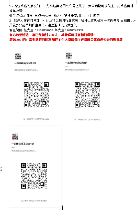 2、生产部消失模工序作业长(副部长) 8K~15K/月任职资格:材料成型或金属材料相关专业本科毕业,5年以上消失模生产线管理经验;薪酬福利:月工资+月考核+季度奖励+年终奖励;保险等;3、中频炉熔炼班长 5K~10K/月