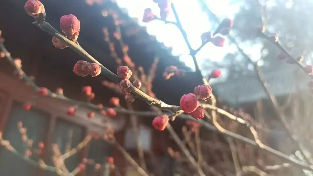 近年来,玉泉寺又增一景,就是冬日红梅。它是有来历的,是净慧长老从湖北黄梅移植来的,树龄200余年,名之曰“乘愿梅”,栽种在玉泉寺三宝殿旁边。鹅黄色的梅,初荷粉的梅,都在一株老树上,真是奇观。或虬枝随形,或宛若游龙,或横瘦疏斜,或柔枝细条。我们的生活,也因一缕淡淡的幽香,因一朵明澈的花影,在寒冬岁末,有了些许清雅的诗意。