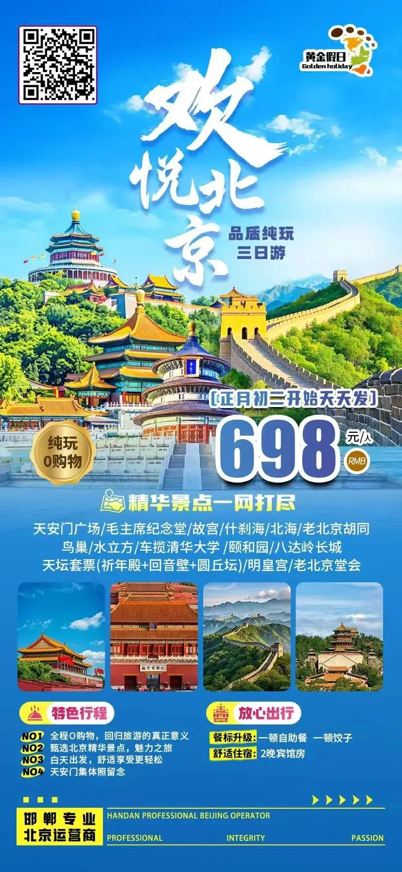 邯郸出发春节北京2日/3日游行程汇总,低至388元起,纯玩无购物.