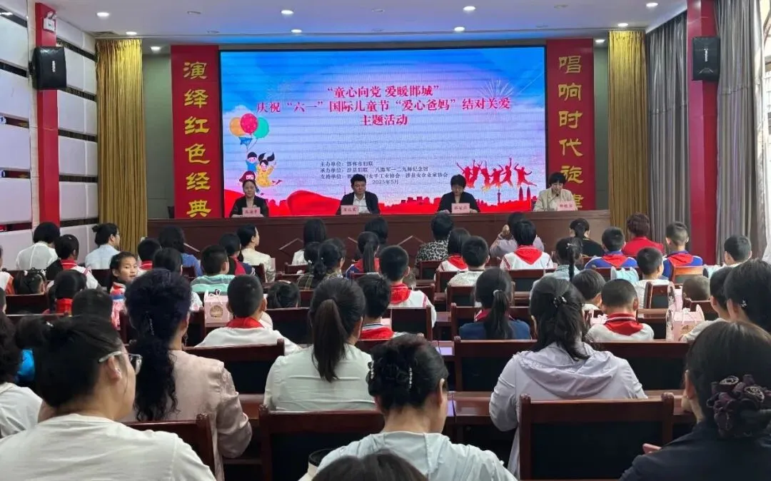 活动现场,邯郸市妇儿工委会为“爱心爸妈”志愿服务队授旗。邯郸市妇女手工业协会、涉县女企业家协会向孩子们捐赠书包、水杯、跳绳等学习和生活用品,并准备了节日蛋糕,鼓励孩子们积极进取、勇敢追梦、健康成长。