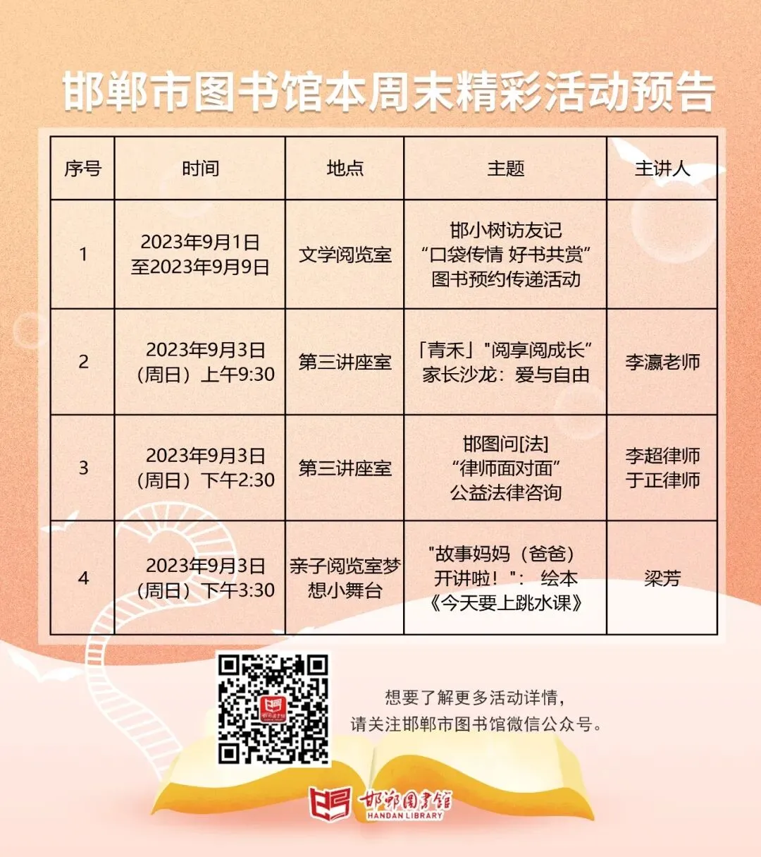 邯郸市图书馆 本周末精彩活动 预告