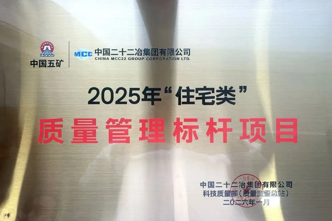 1月22日,中国二十二冶召开第三届质量管理标杆项目评选大会。一公司邢台海棠云颂二期项目凭借扎实严谨的质量管理体系、精益求精的施工工艺标准以及规范有序的现场管理表现,在100余个住宅类项目中脱颖而出,最终以综合评分第一的优异成绩斩获中国二十二冶2025年“住宅类”质量管理标杆项目。