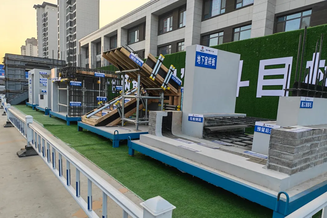 项目部建立严格的供应商准入与考评机制,对钢筋、混凝土、防水材料等关键建材实施实地考察与驻厂监造,所有材料进场前必须经过抽样送检,确保符合国家绿色建筑标准及项目质量要求,从源头杜绝不合格材料投入使用;全面推行“样板先行”制度,明确施工工艺、质量控制要点及验收标准,组织施工人员进行技术交底与培训,确保各工序施工有章可循、有据可依;采用“流水段施工法”划分施工段,实现各工序有序衔接、平行作业,通过合理设置后浇带有效解决混凝土收缩裂缝问题,实现工期与质量双保障。同时严格执行“三检制”与及隐蔽工程验收管理制度,关键工序实行“举牌验收”,对防水防潮、钢筋保护层厚度等关键部位设置质量控制点,有效解决渗漏隐患,混凝土强度、防渗指标合格率均达100%。