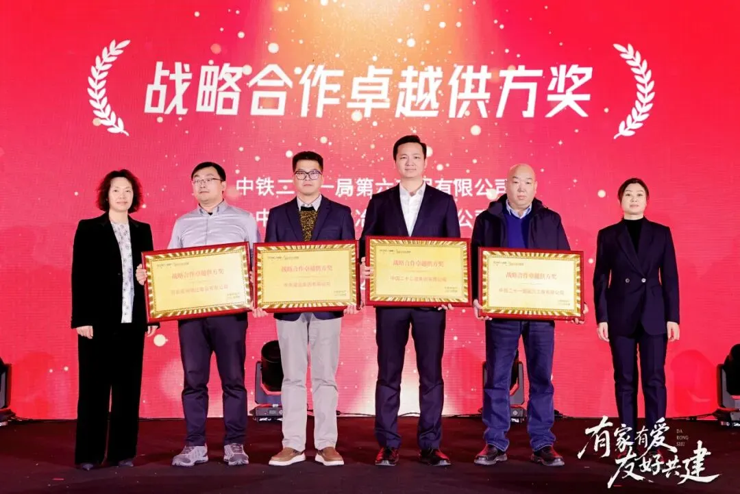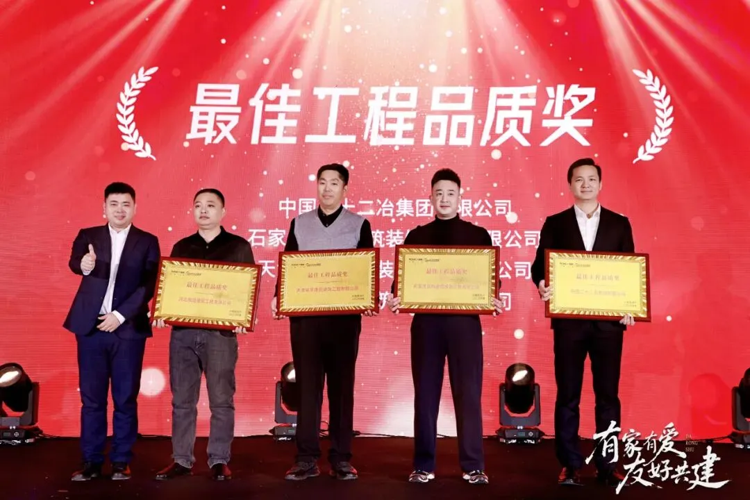 匠心精筑,共鉴品质。项目通过系统化质量管控与技术创新,实现工程质量全面达标,在2025年度中国二十二冶第三方飞检和建设单位飞检中综合得分均在90分以上,荣获中国二十二冶2025年度测量专项检查第一名;在河北大榕树集团2026年小伙伴大会(暨分供商大会)中被授予“最佳工程品质奖”“战略合作卓越供方奖”两个奖项。
