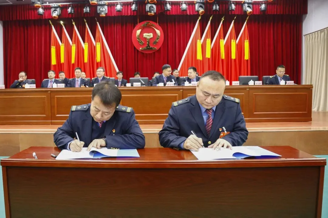 段长杜福成和工会主席马相林分别代表段行政和全体职工签订2026年集体合同。