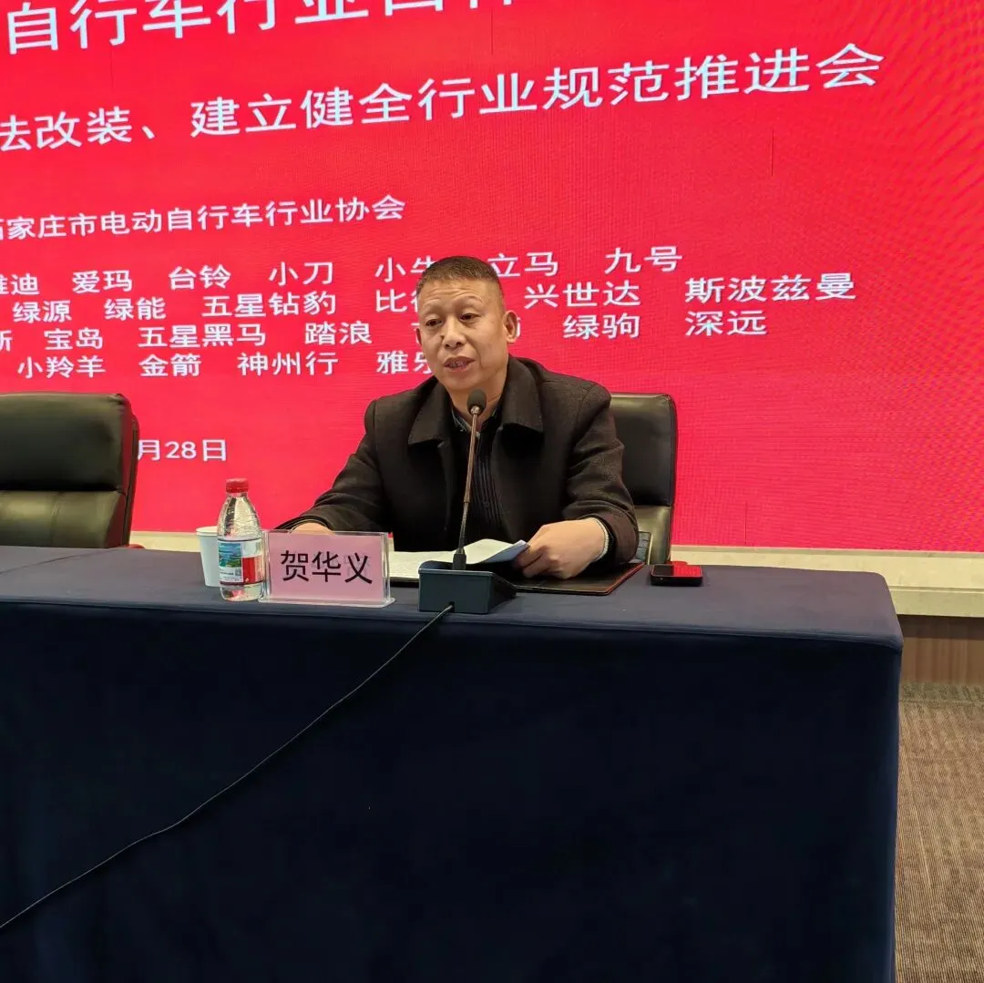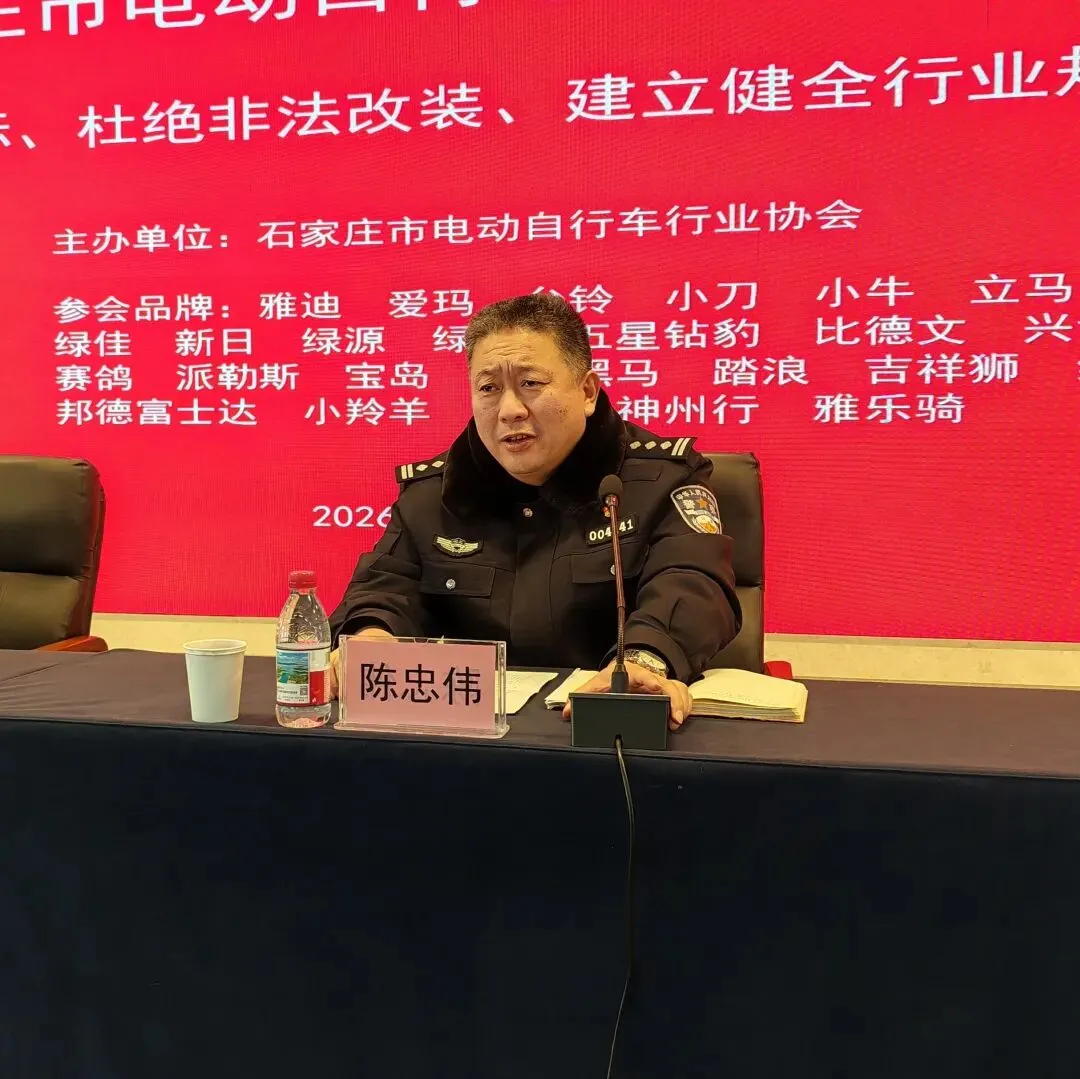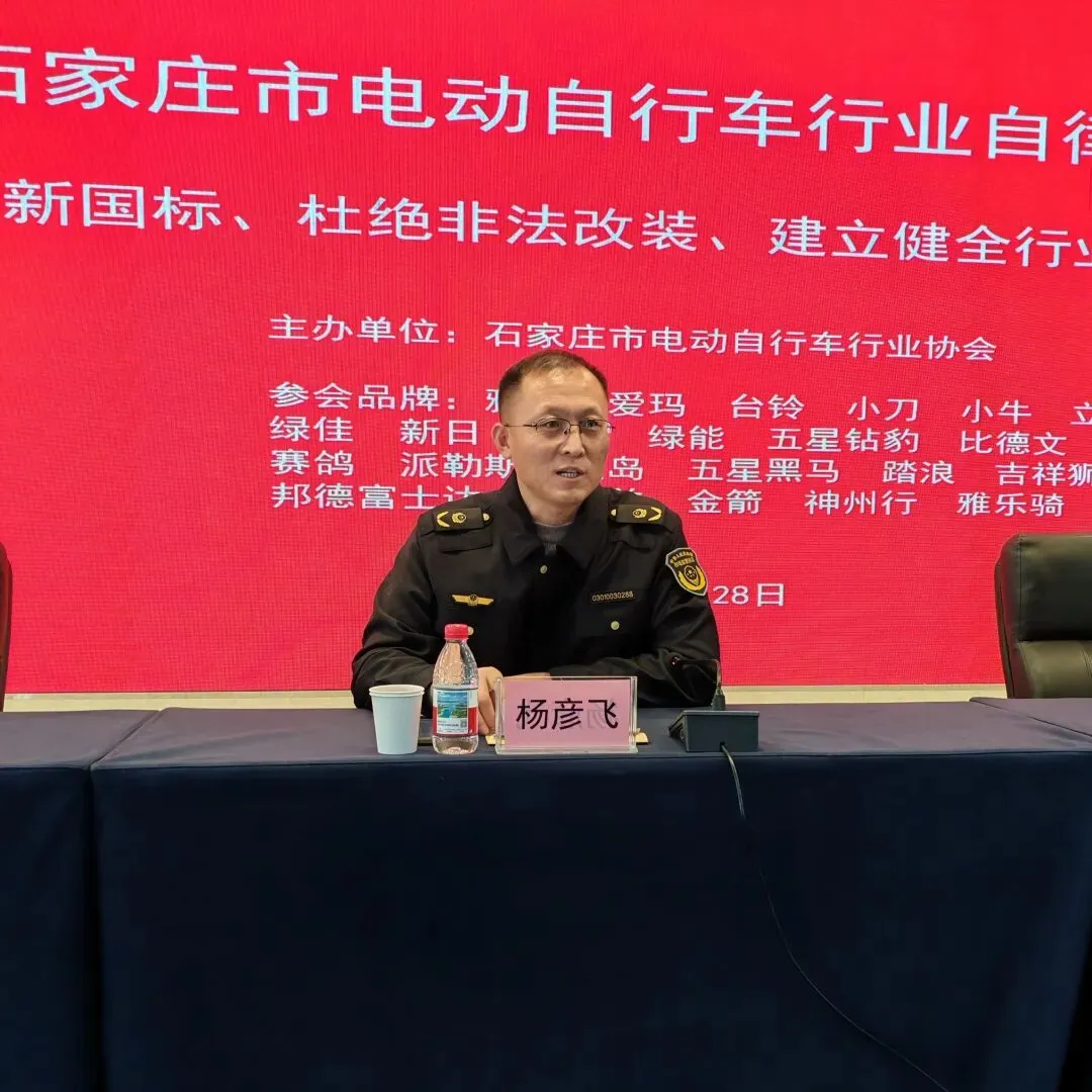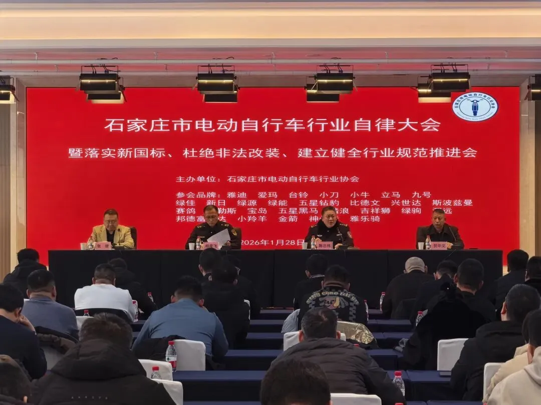 2026年1月28日,由石家庄市交通管理局、石家庄市市场监督管理局联合指导,石家庄市电动自行车行业协会主办的“石家庄市电动自行车行业自律大会暨落实新国标、杜绝非法改装、建立健全行业规范推进会”成功召开。本次会议旨在深入贯彻落实国家电动自行车新标准要求,强化全链条监管,推动行业健康有序发展。