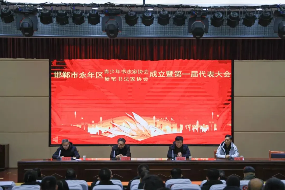 1月25日,邯郸市永年区青少年书法家协会、永年区硬笔书法家协会成立暨第一届代表大会在区第五实验学校圆满召开。河北省硬笔书法家协会副主席、邯郸市硬笔书法家协会主席王旭东;邯郸市硬笔书法家协会副主席李巍涛;邯郸市硬笔书法家协会副主席王子强;邯郸市青少年书协副主席、邯郸韩玉臣美术馆执行馆长何家骢;邯郸市青少年书协副主席郝彦林;邯郸市青少年书协顾问张增祥;邯郸市青少年书协副秘书长胡同祥;永年区文联主席常炳革及区书法家协会会员代表共计100余人参加了大会。