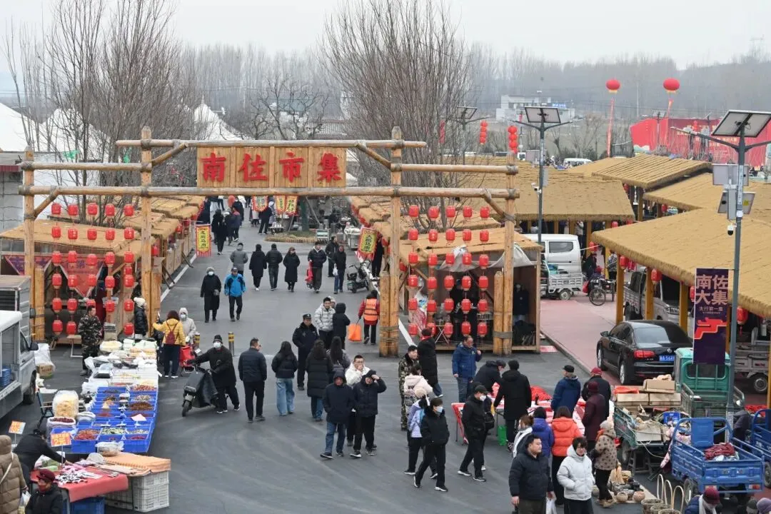 南佐大集始于明朝嘉靖年间,传承至今已有四百余年历史。如今,集市摊位1800多个沿街排开。集市固定于农历逢一、逢六开集,临近春节,集市更是年味愈浓,红彤彤的春联、灯笼沿街高挂,手工粉条、荞麦面条、山核桃、柿饼等本地特色琳琅满目,不少外地游客驱车赶来,沉浸式感受这份独属于乡村大集的热闹与喜庆。
