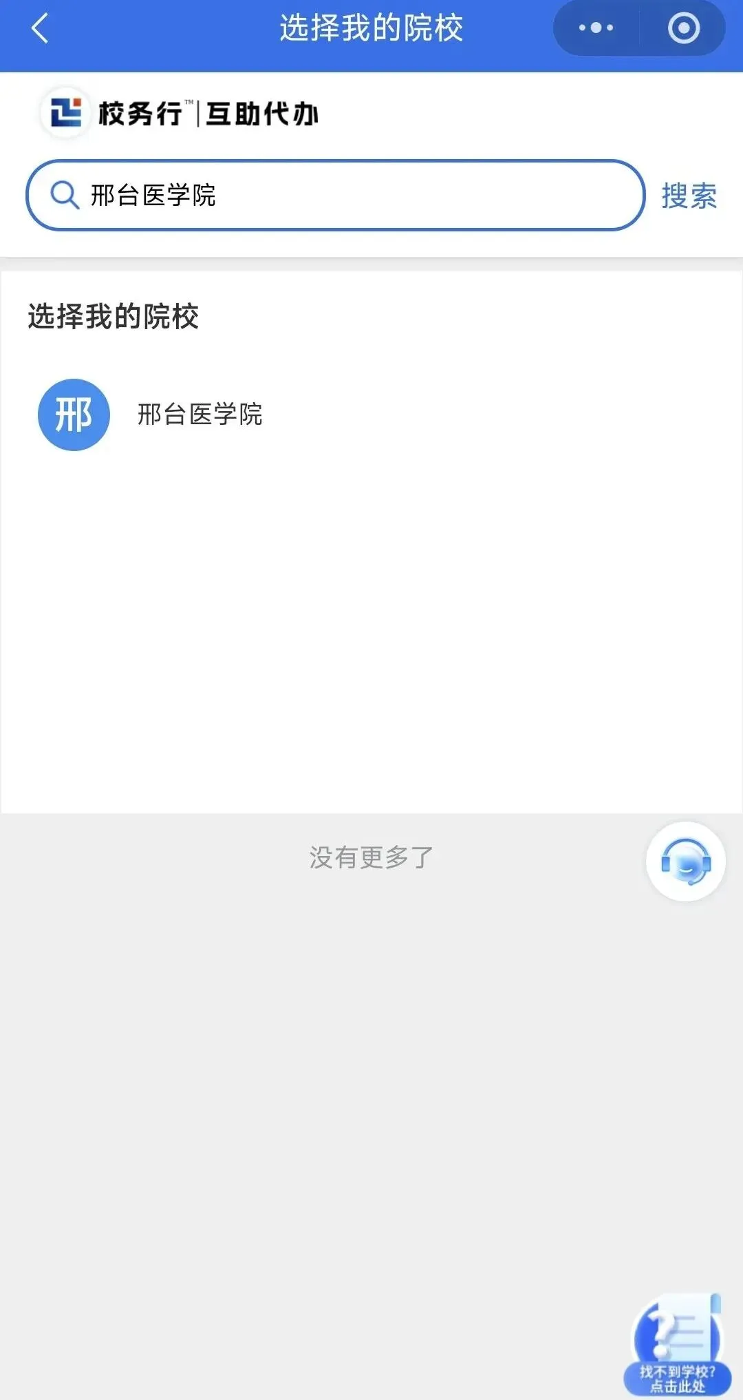 1. 进入后查看服务说明并勾选同意,然后选择“邢台医学院”(曾用名:邢台医学高等专科学校)。