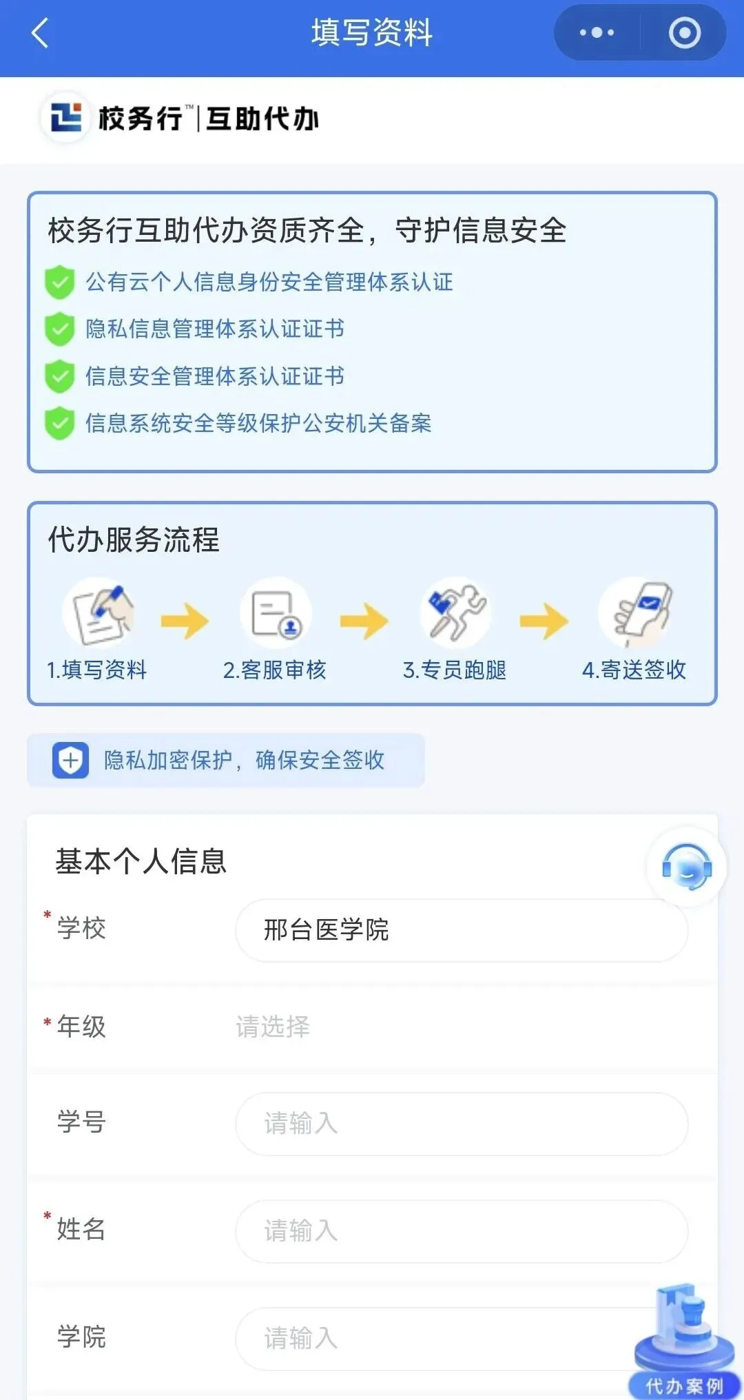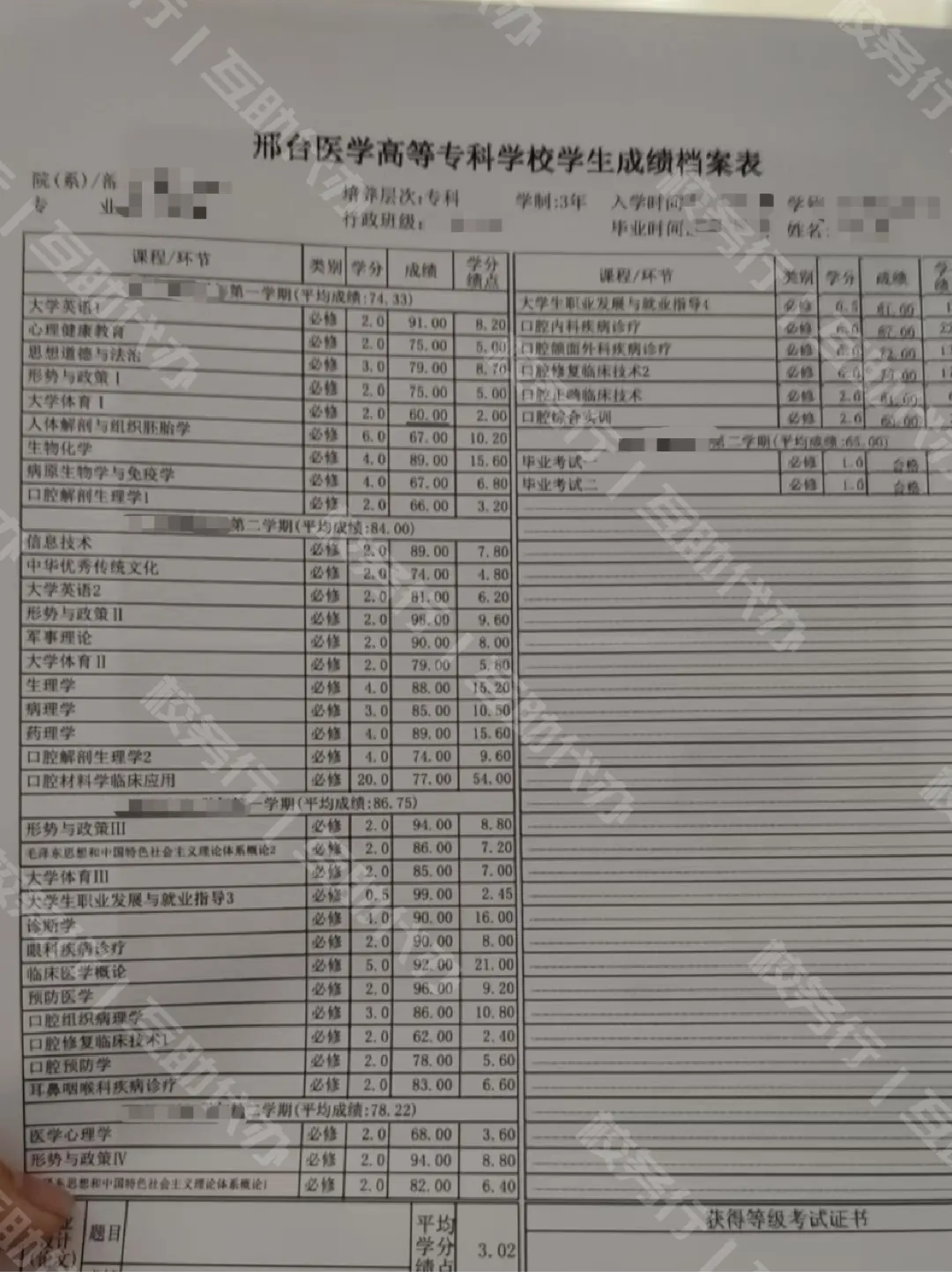 我们帮助了邢台医学院(曾用名:邢台医学高等专科学校)的许多应往届校友办理各类中英文成绩单、毕业证明、学位证明、均分证明等学籍材料,要求加盖院校鲜章,以及材料需放入信封密封加盖骑缝章的,校务行代办人员基本都在在2-3个工作日内取好盖章材料并寄出。