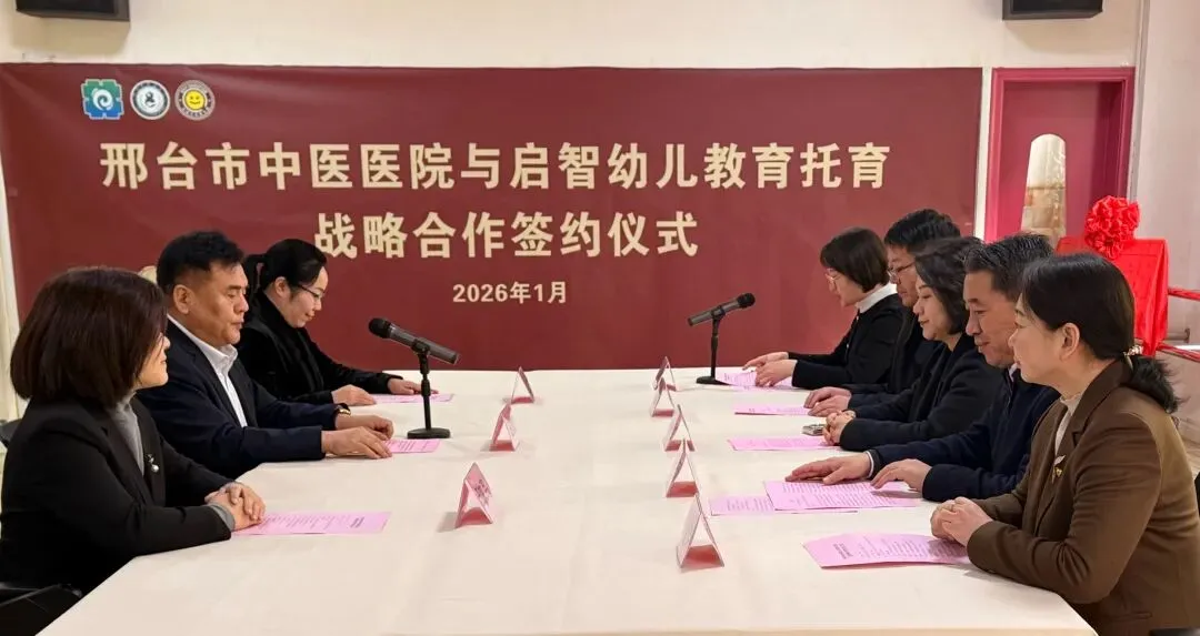 王庆周书记在讲话中表示,邢台是医祖扁鹊故里,邢台市中医医院作为全市中医药事业中坚力量,聚焦“一老一小”民生需求,儿科与儿童保健康复科依托名老中医传承工作室,推出小儿推拿等特色服务,深受家长信赖;古城院区的中医研学基地也让中医药文化从娃娃抓起。启智幼儿教育深耕托育二十载,打造“小小中医馆”,探索中医与托育融合,与医院理念高度契合。此次合作是响应“医育结合、育教融合”的重要举措。医院将全力投入资源,与启智携手探索新模式,助力邢台托育事业高质量发展,擦亮“泉城托”品牌。
