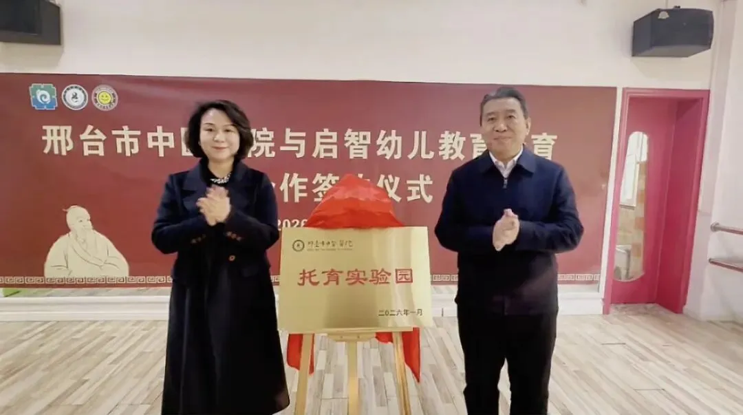 太行泉城春意生,医育携手护成长。1月28日上午,邢台市中医医院托育实验园在启智教育艺禾幼儿园揭牌。邢台市卫生健康委副主任、市中医药管理局局长刘君红,邢台市中医医院党委书记王庆周,市卫生健康委老龄健康与医养结合科科长李志华,市中医医院副院长贾金英及启智幼儿教育董事长王建军等出席仪式。市中医医院糖尿病院区常务执行副院长张艳玲主持仪式。 在全场嘉宾的共同见证下,刘君红主任与王庆周书记共同为托育实验园揭牌。贾金英副院长与王建军董事长代表双方签署战略合作协议。刘君红主任讲话,近年来,市委、市政府始终将托育服务作为保障民生福祉的战略任务,推动全市托育服务从“补短板”迈向“提质量”。在推进托育体系建设中,我市坚持特色化与规模化并举,做强“泉城托”品牌。同时加大优质托育供给,落实扶持政策,构建便捷服务圈,方便群众就近送托。此次签约,市卫健委将全力支持双方深化合作、落地见效,希望双方以此为契机,坚守为民初心,发挥各自优势,将合作项目打造成为全市“医育融合”的标杆工程、“泉城托”品牌的示范窗口,让每个家庭都能感受到政策的关怀与服务的成效。