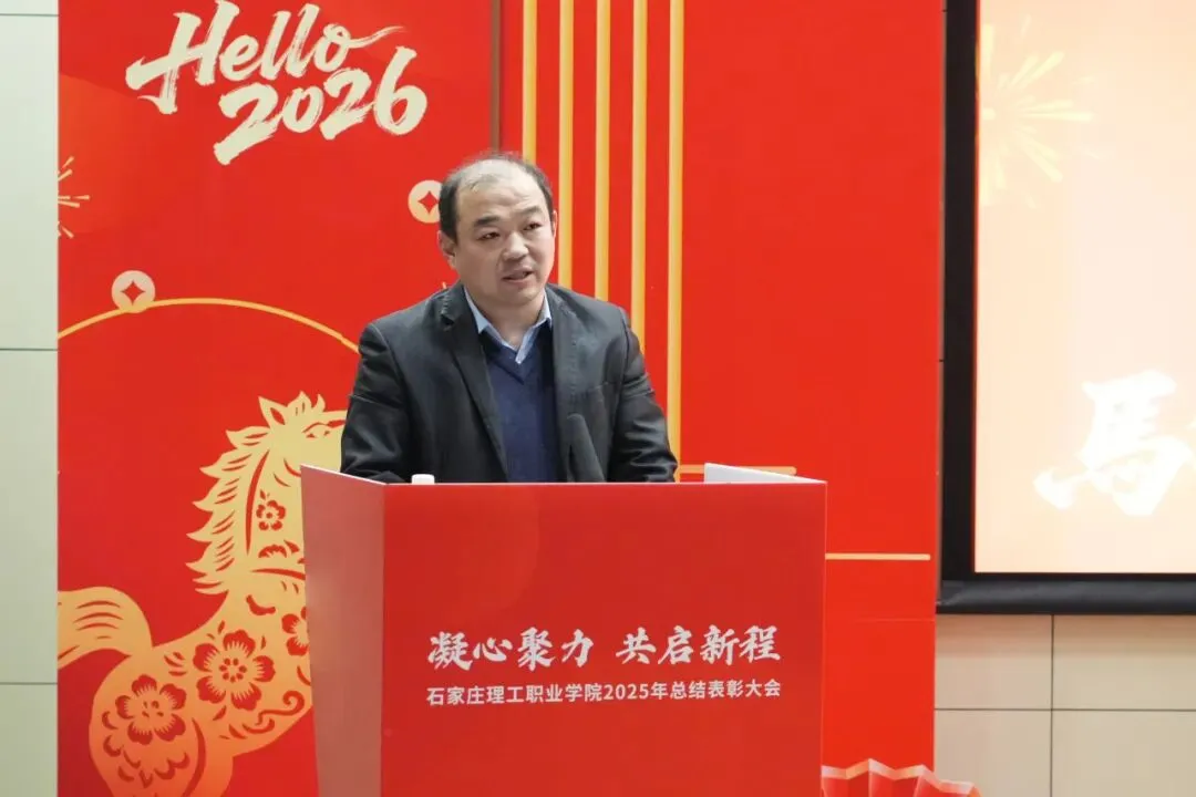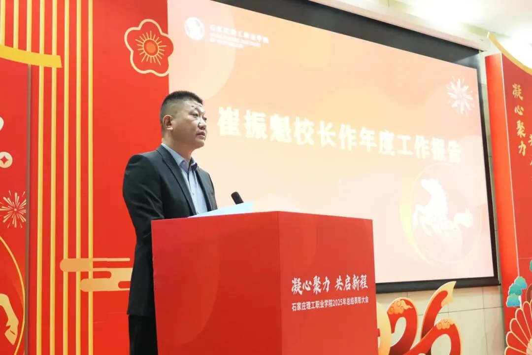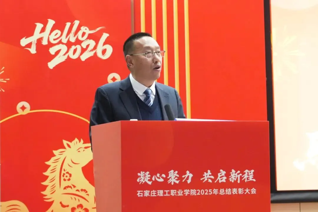 1月27日下午,石家庄理工职业学院2025年度总结表彰大会隆重举行。大会全面回顾总结过去一年的工作成绩,表彰先进典型,展望未来发展蓝图,进一步凝聚全院师生员工奋进力量。全体校领导、受表彰先进集体与个人代表及师生代表齐聚一堂,共同见证这一荣耀时刻。