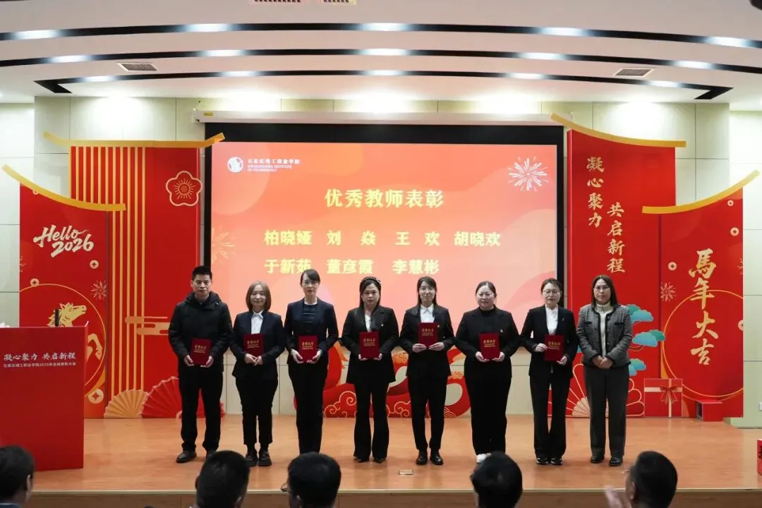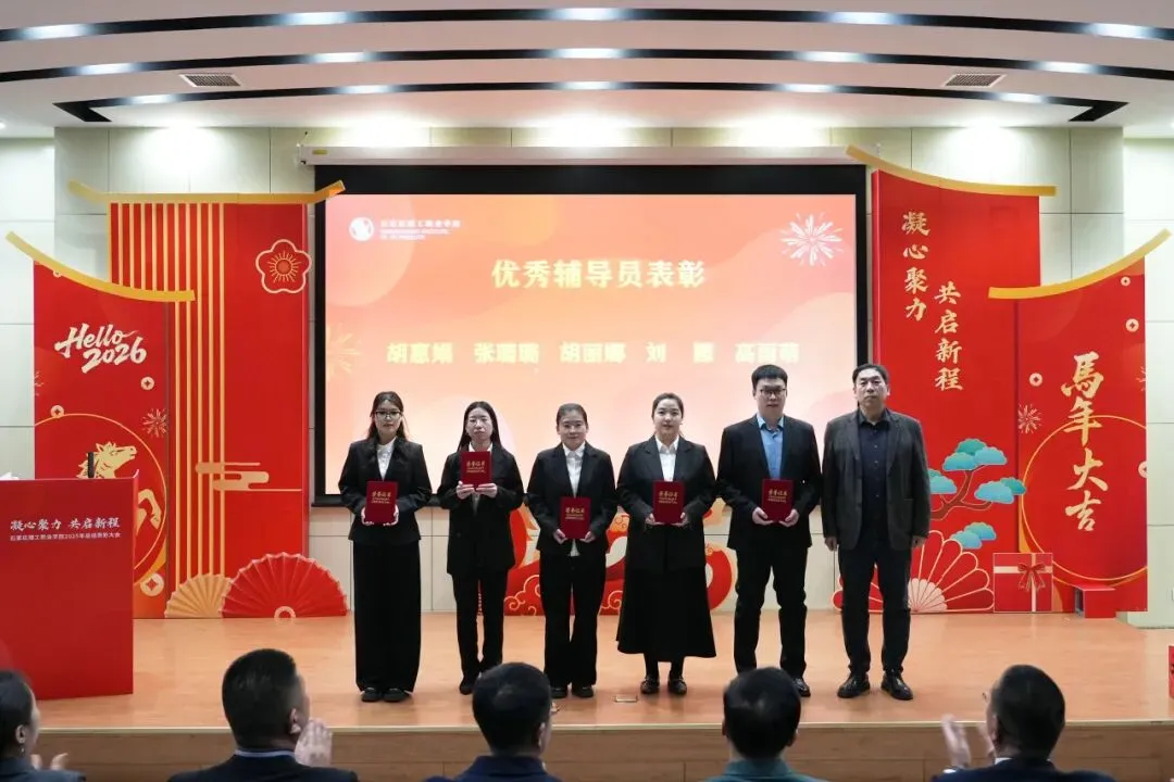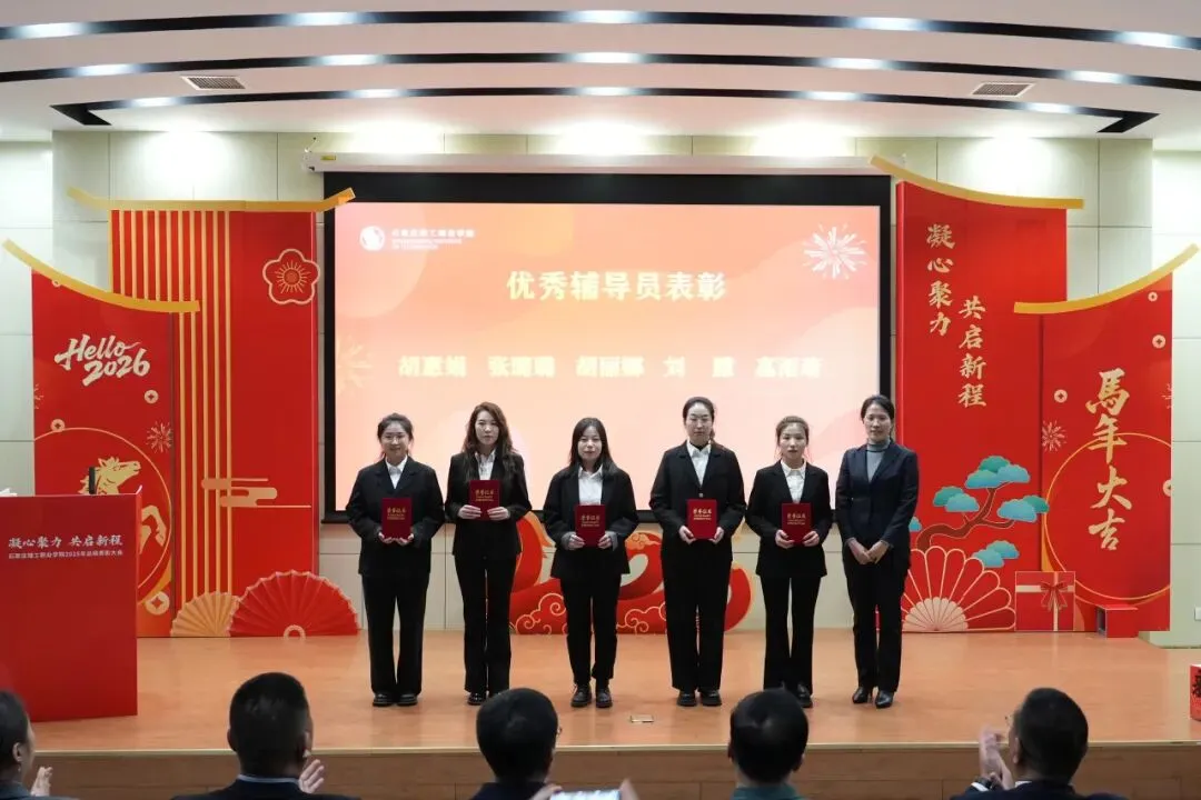 随后进入隆重的表彰环节。大会依次对荣获“优秀辅导员”“优秀教师”“先进工作者”“突出贡献奖”的先进个人,以及在“征兵工作”“就业工作”中表现突出的先进集体和个人进行了表彰。校领导依次为获奖代表颁发了荣誉证书。现场掌声不断,气氛热烈,表彰不仅是对过去一年优异成绩的肯定,更激励着全体教职员工以先进为榜样,立足岗位再建新功。