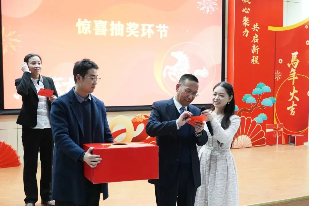 机关党总支与马克思主义学院联袂献上的歌舞《相亲相爱》,以温暖和谐的旋律,生动展现了理工大家庭团结一心、亲密无间的精神风貌。穿插于节目之间的三轮抽奖环节,更是惊喜不断、笑语盈堂,整个会场始终洋溢着欢乐与热烈的气氛。
