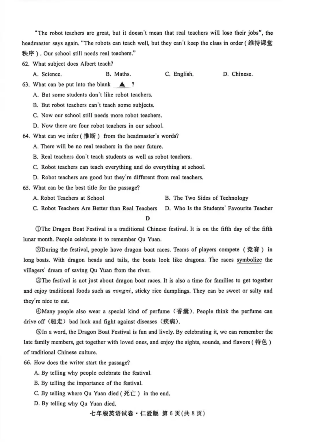 温馨提示:清晰版试卷在下载地址里找,网盘免费下载