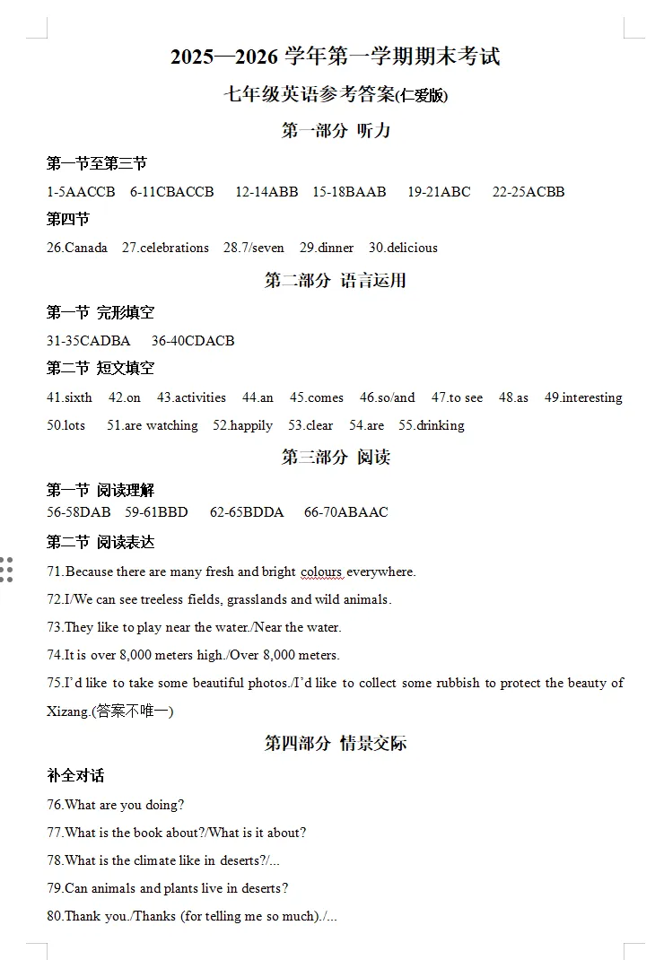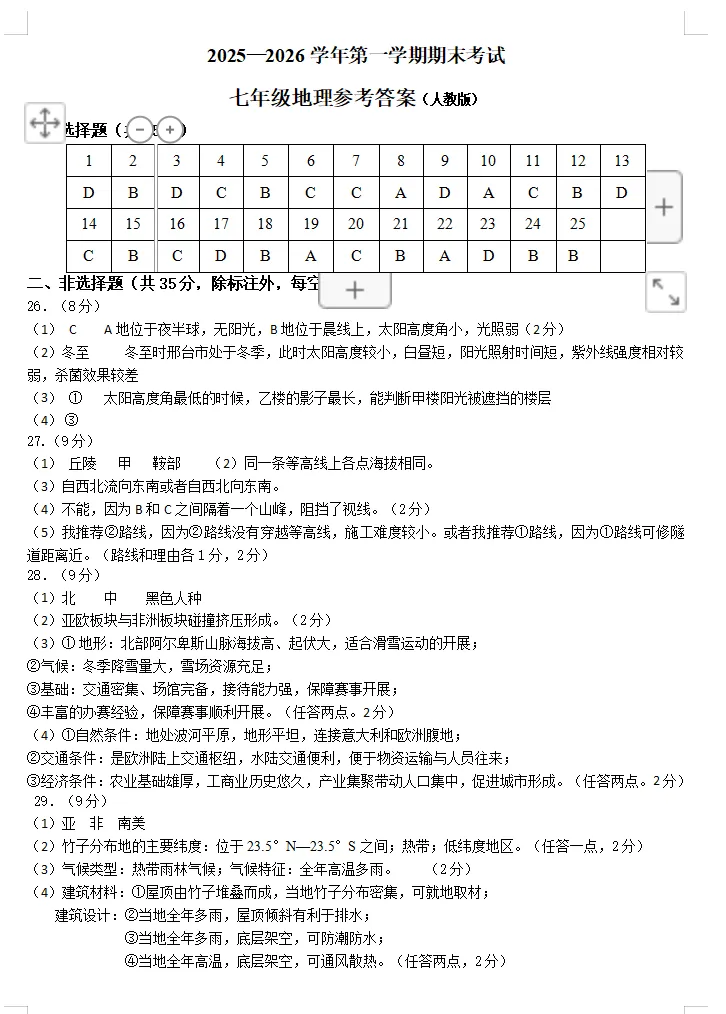 夸克「2026.1邢台市七八九年级期末试卷」