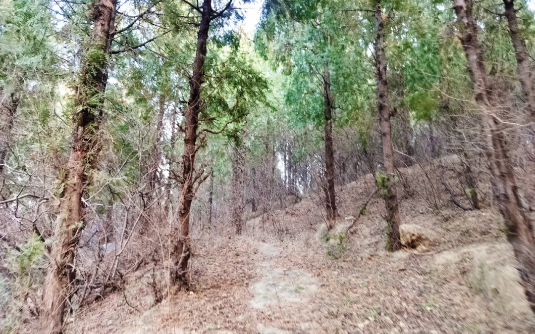接下来穿过一小片柏树林,没想到这是这次爬山线路中,最舒适的路段。可惜的是,此路段非常短,不到二分钟就结束。