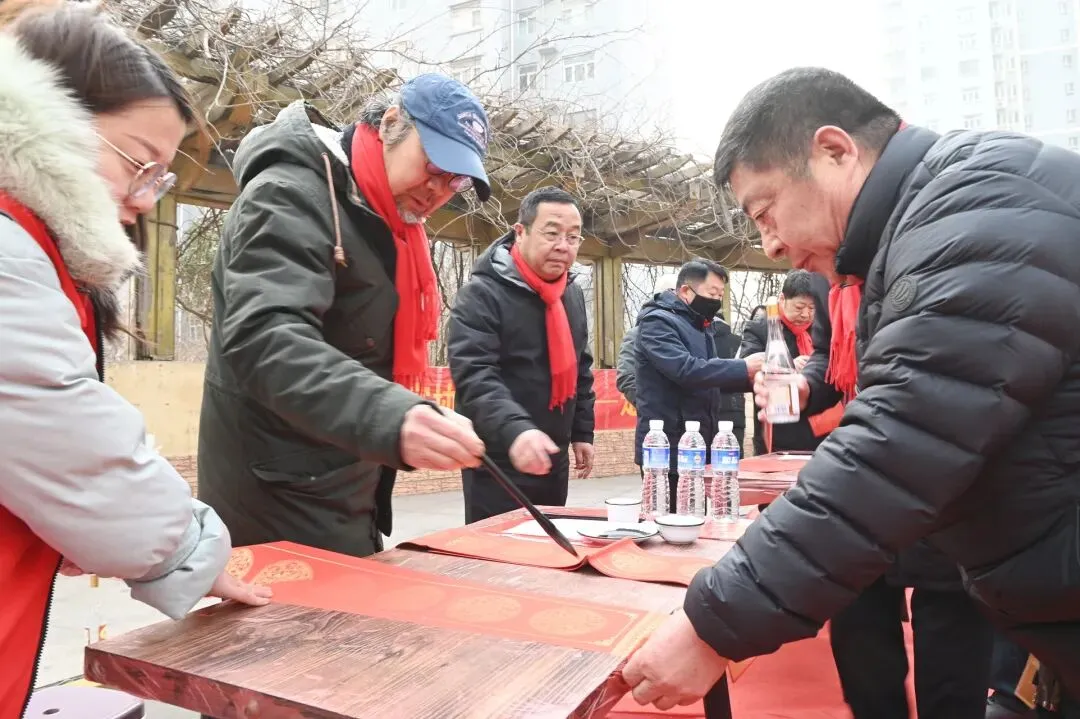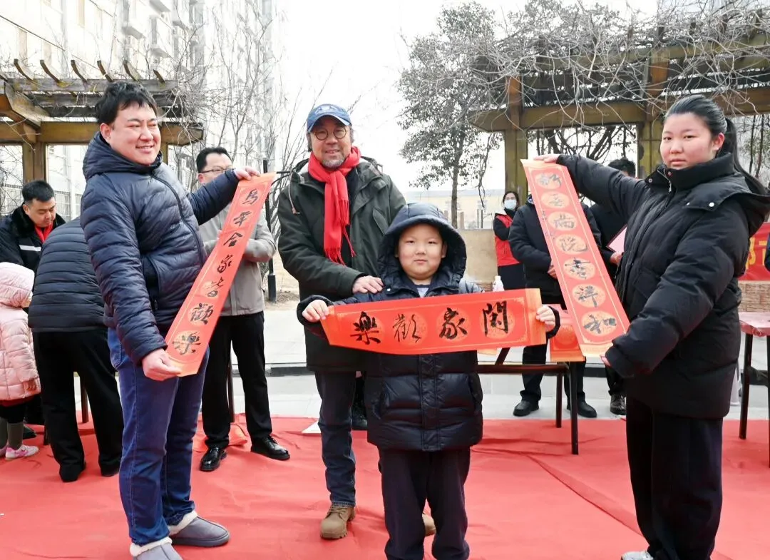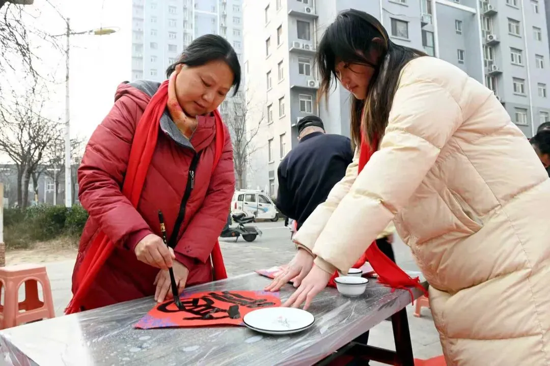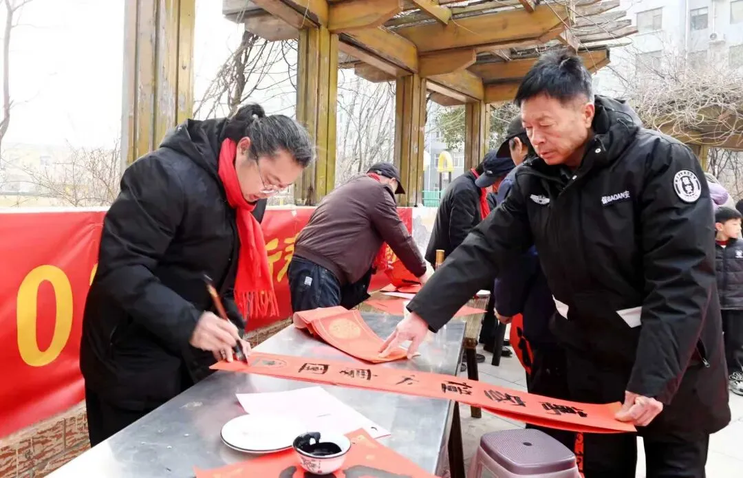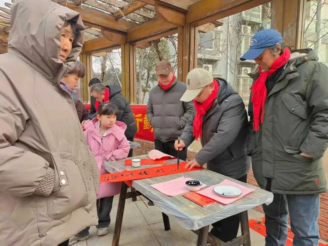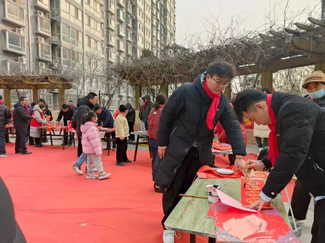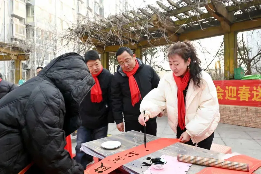 在小区广场,书法家们不畏风寒,热情为居民书写春联。他们用饱蘸浓情的笔墨,在红纸张上挥洒,为闻讯前来的居民书写一副副寓意吉祥的春联与厚重喜庆的福字。“骏马踏春开景运,瑞风送暖入华年”“马年合家皆欢乐,新春满院尽祥和”……每一副春联,都寄托着对新一年事业兴旺的期盼,每一个“福”字,都承载着对居民全家平安喜乐的祝愿。