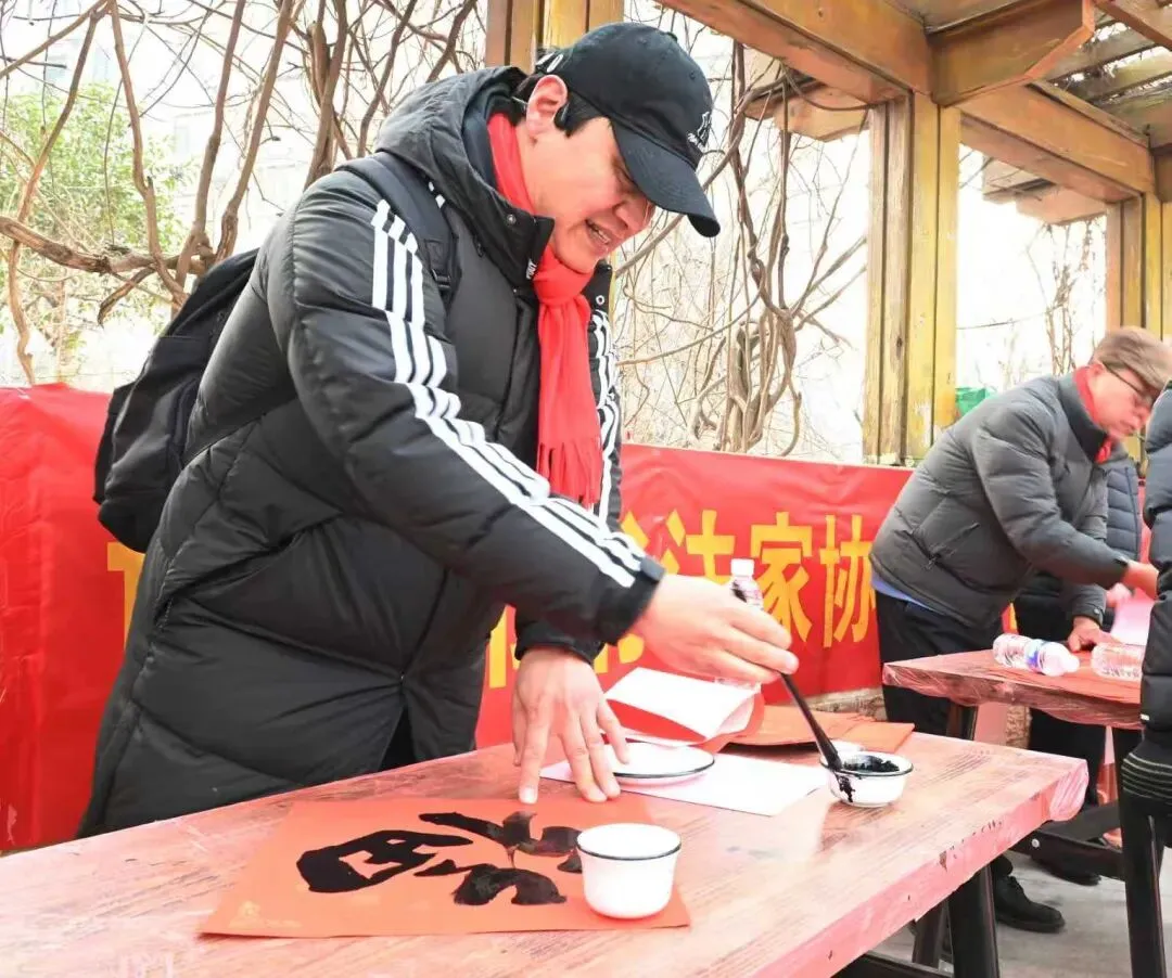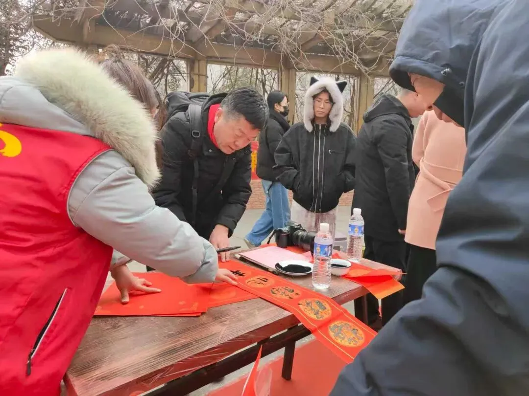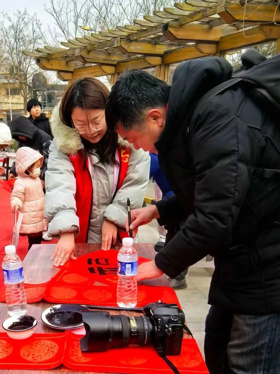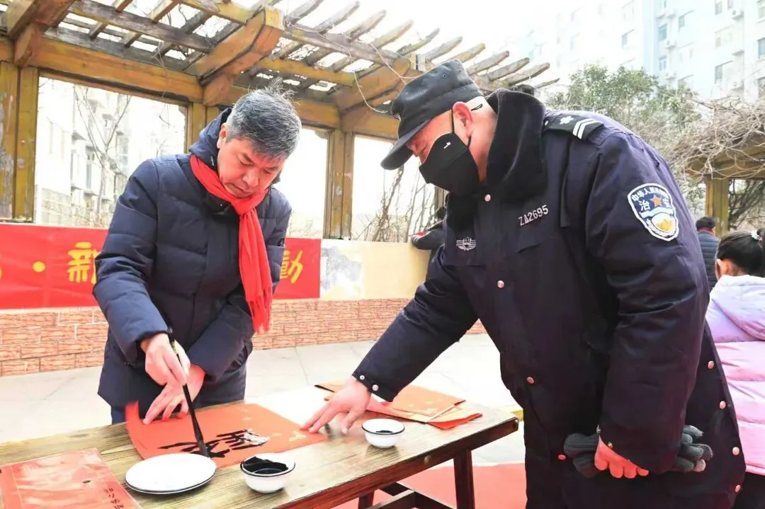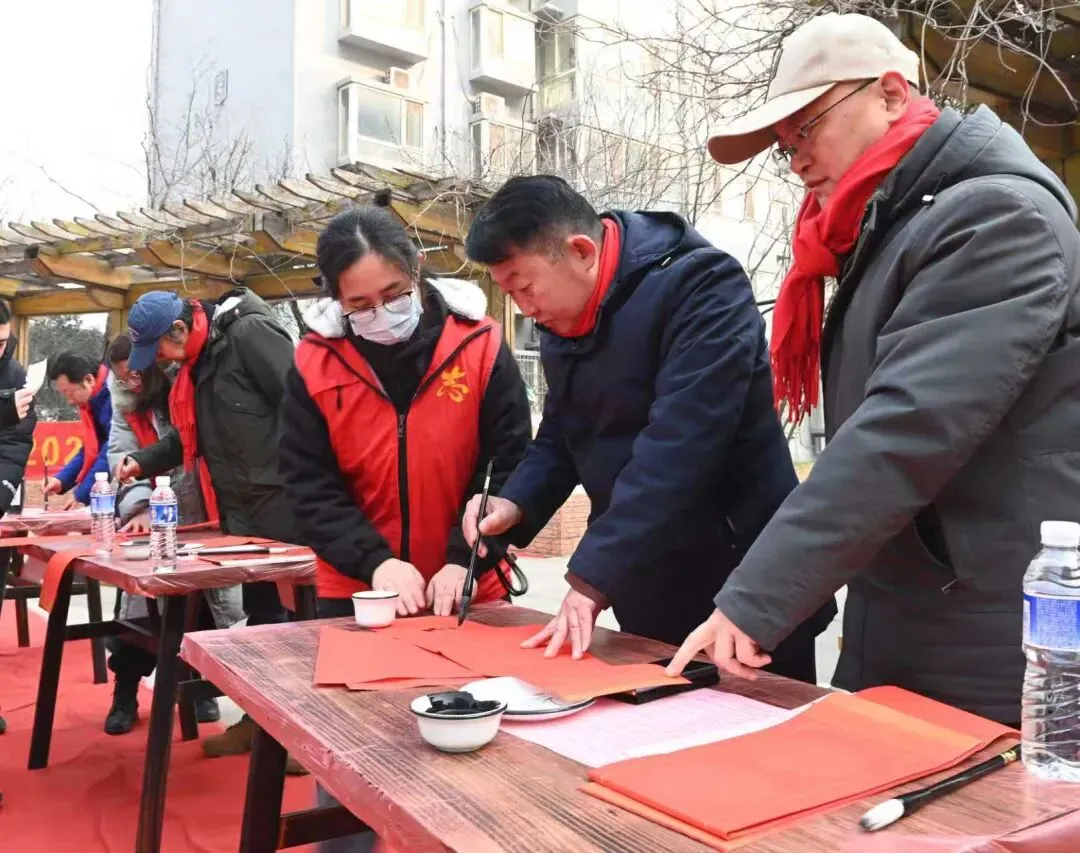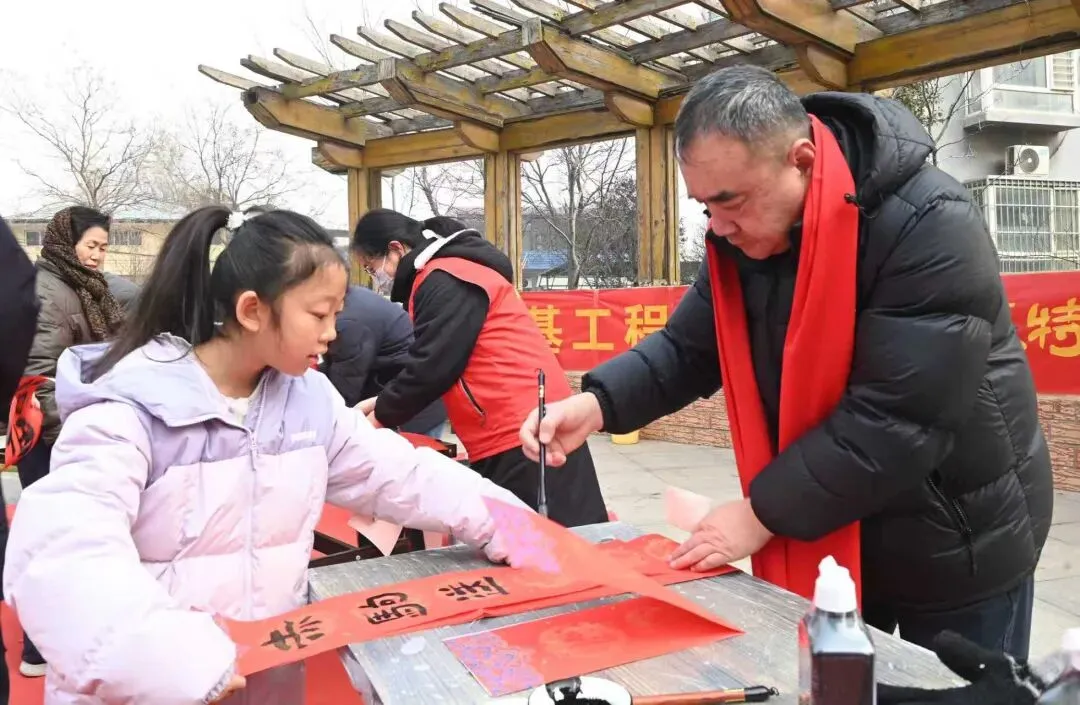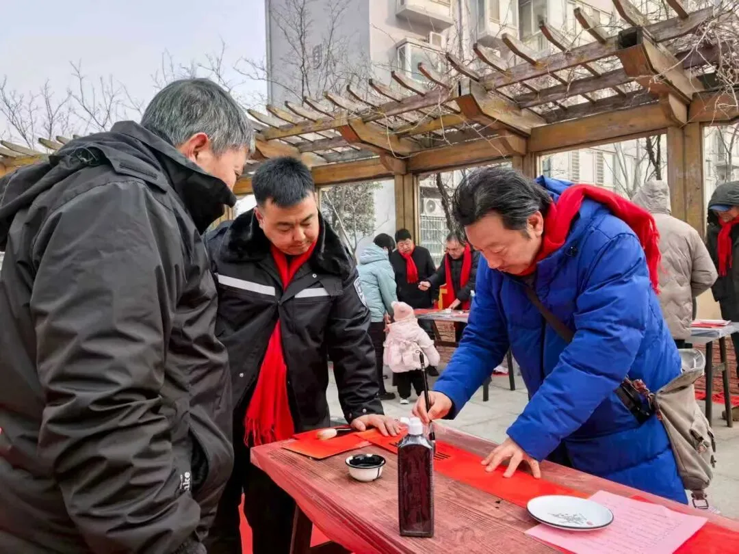 在小区广场,书法家们不畏风寒,热情为居民书写春联。他们用饱蘸浓情的笔墨,在红纸张上挥洒,为闻讯前来的居民书写一副副寓意吉祥的春联与厚重喜庆的福字。“骏马踏春开景运,瑞风送暖入华年”“马年合家皆欢乐,新春满院尽祥和”……每一副春联,都寄托着对新一年事业兴旺的期盼,每一个“福”字,都承载着对居民全家平安喜乐的祝愿。