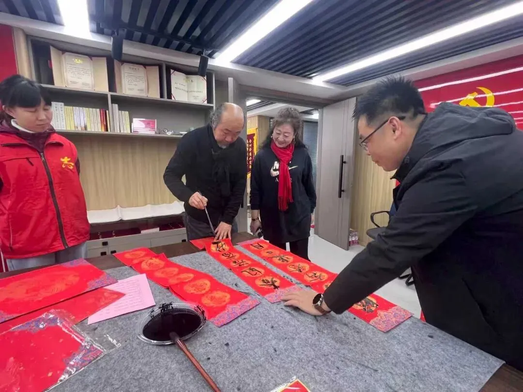 为居民写春联活动结束后,书法家们不辞辛劳,又到东方新城社区党群服务中心慰问工作人员,为他们书写春联,并应大家的要求纷纷题赠墨宝。“耕读传家”“笃行致远”“家和万事兴”……在写春联、送祝福的同时,让社区工作人员近距离观摩书法创作的魅力,感受中华优秀传统文化与社区精神文化生活的碰撞交融。“李琦主席带领市书法名家的到来,增添了社区里辞旧迎新的氛围,丰富了社区文化生活,提升了大家过节的幸福感。”物业公司总经理贾亚亮激动地说。