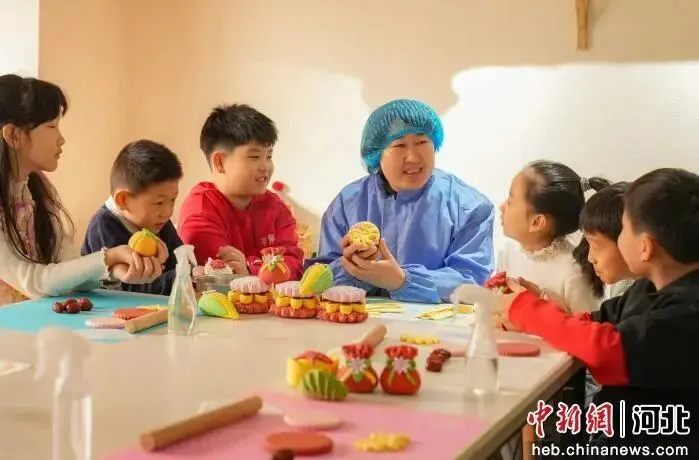 图为小朋友正在体验非遗花馍制作。 王倩倩 摄