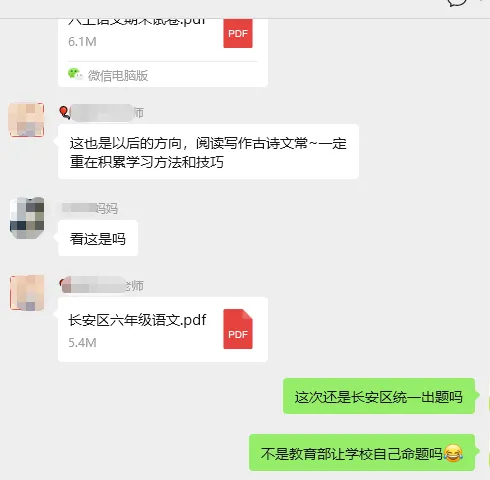 坐标石家庄,昨天上午市内四区小学刚考完期末。某桥、某鹏等机构火速把长安、新华、高新、桥西的“区统考试卷+答案”塞满家长群🔥我当时一看,还问了下:还是区统考吗?不是学校自主命题?没人回复我。回家一问俩娃:你们考的是哪套题?看下是不是群里这套?姐妹俩:我们学校自己出的题,试卷上方有我们学校名字呢。原来,别人在统考狂欢,我们学校在自主命题了📚昨晚7:30去接姐姐下英语课,老师也证实:长安区有的学校用区卷,有的(比如麦麦学校)坚持校本命题。恰逢“严禁组织区域性、跨校际统一考试”政策落地第一年,我们学校就执行得严丝合缝。我想表达的是,要取消就全取消好了,为啥还有的区考有的自主命题。(俩娃说,这次题简单的要死,闭着眼都能考60分那种~)