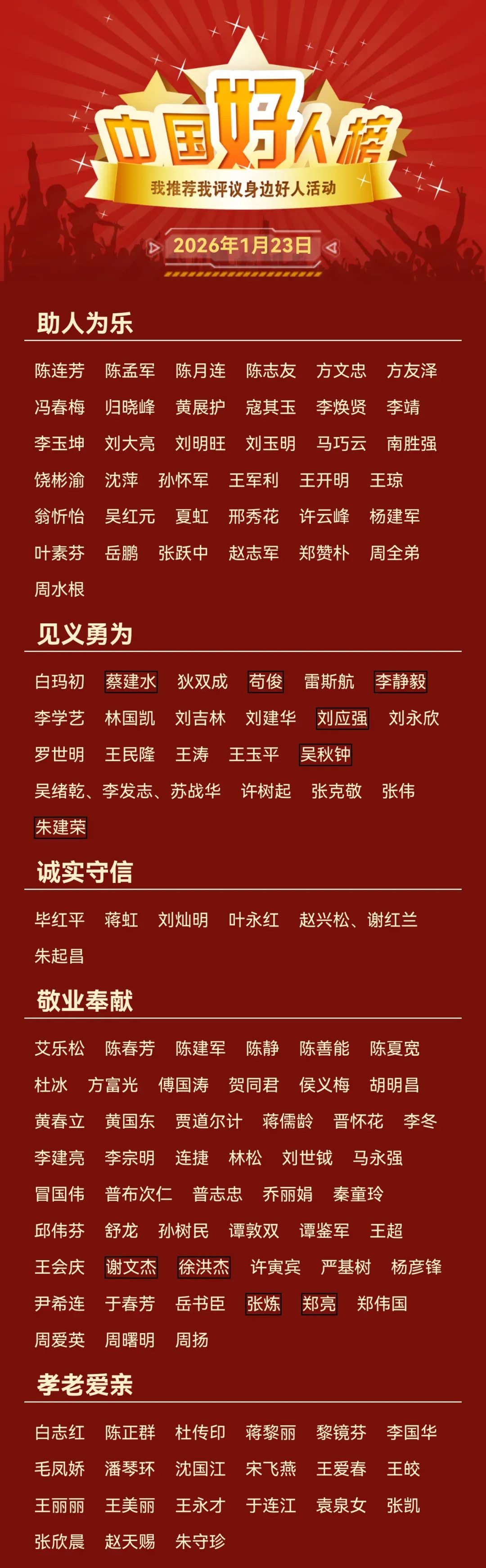 2025年第四批“中国好人榜”榜单