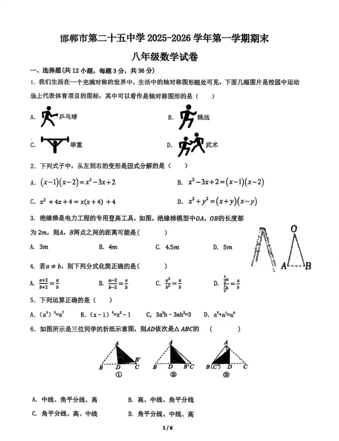 2026.1河北省九年级结课考试数学试卷