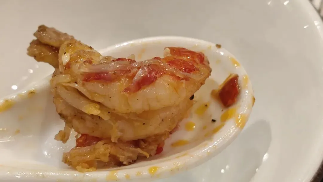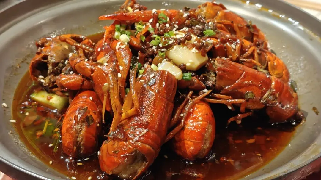 小蓝龙有两种做法可以选,我们选了油焖。个头确实比普通小龙虾的大了很多,但出肉率依然可怜,吃这个主要还是吃调料。